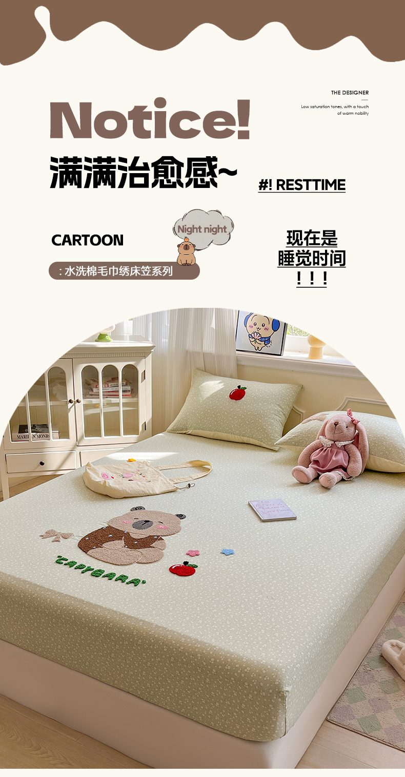 盼季家纺 2025新款水洗棉毛巾绣床笠系列(提供买家秀) 毛巾绣床笠-萌萌狮