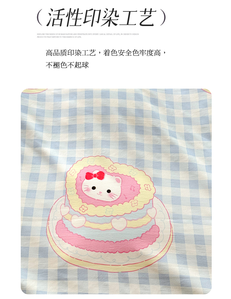多品家纺 2025新款超柔双层纱水洗棉单被套 派对猫