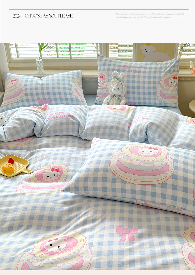 (总)多品家纺 2026新款奶呼呼超柔云感双层纱系列四件套,白露紫,半岛兰格,半岛紫格,豹纹猫咪,粉粉小花,福气满满,花田小狗,欢乐时光,开心狗,棉花兔兔,浅浅春意,桃气兔兔,淘气园,汪星人,小橘狗,熊多多,熊熊空间,学院派,樱桃蓝,樱桃紫