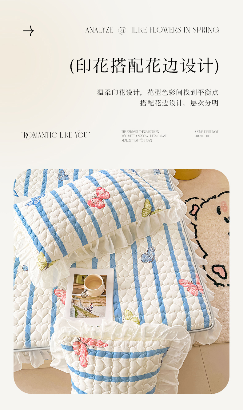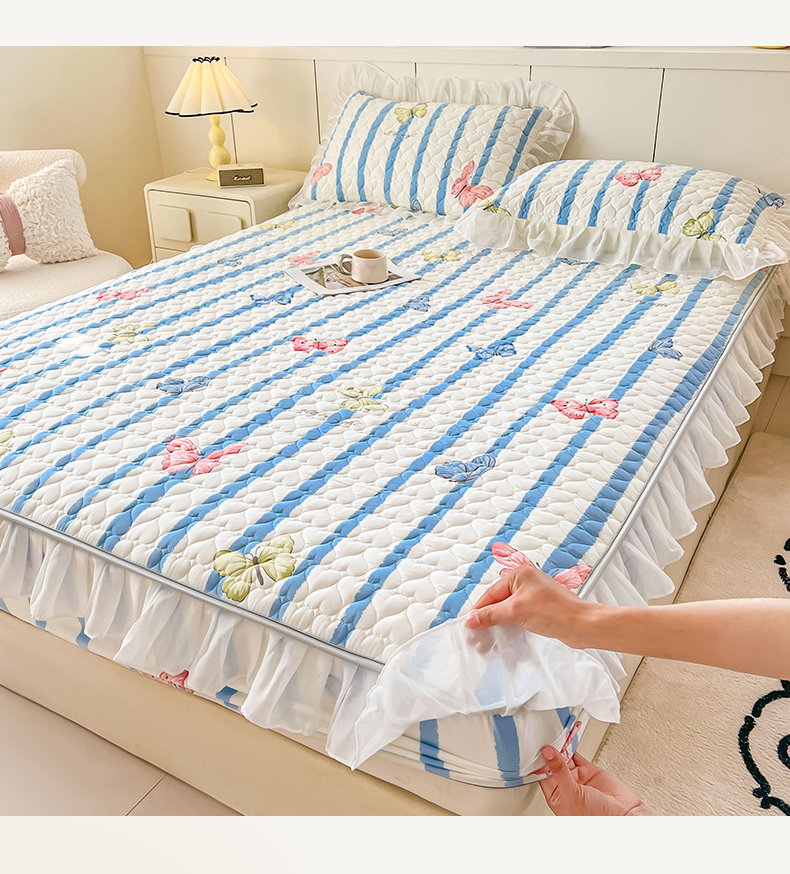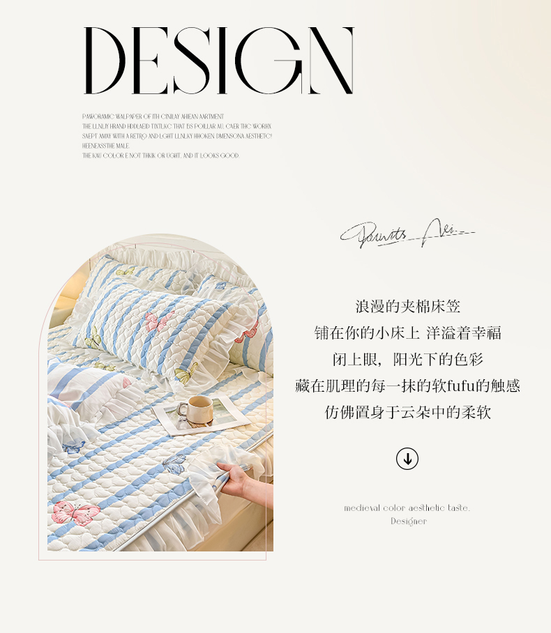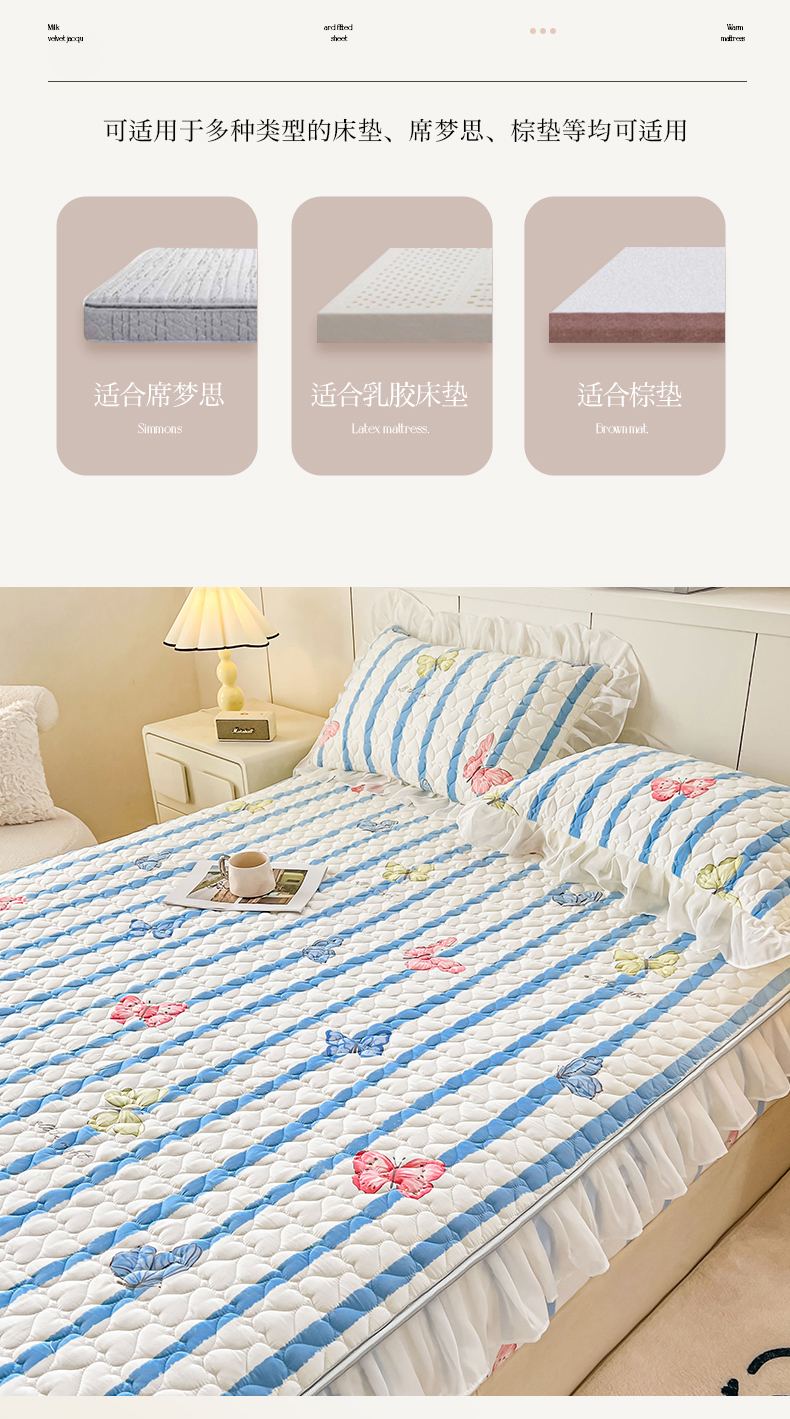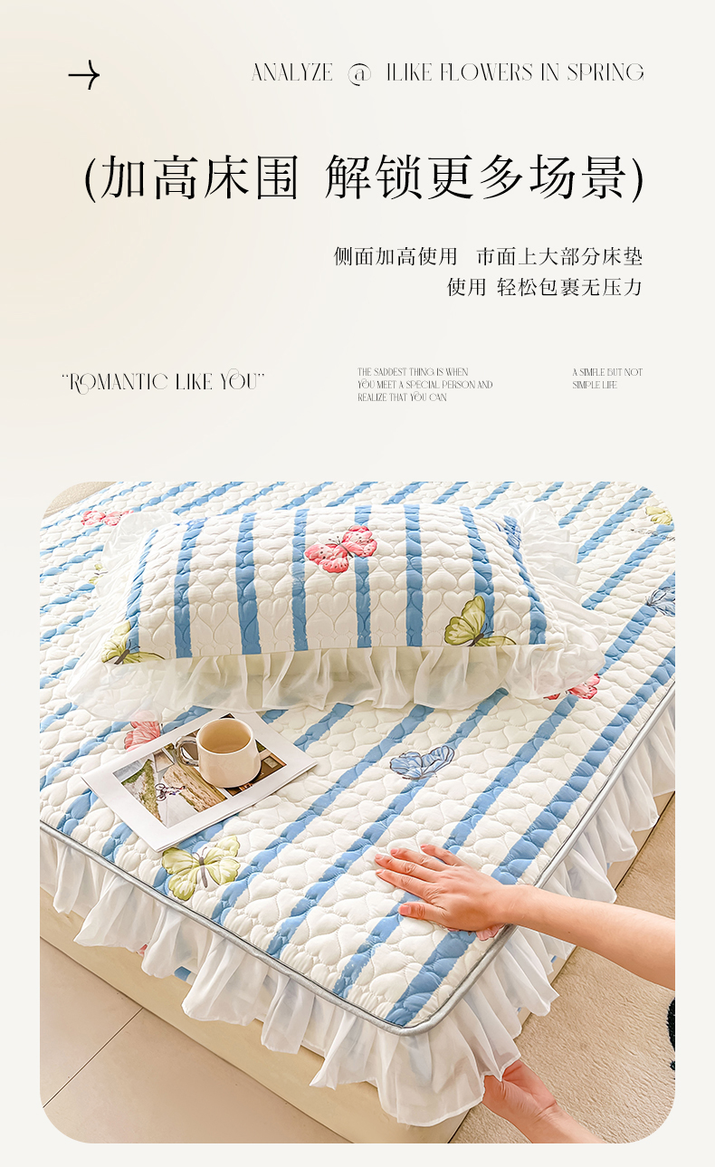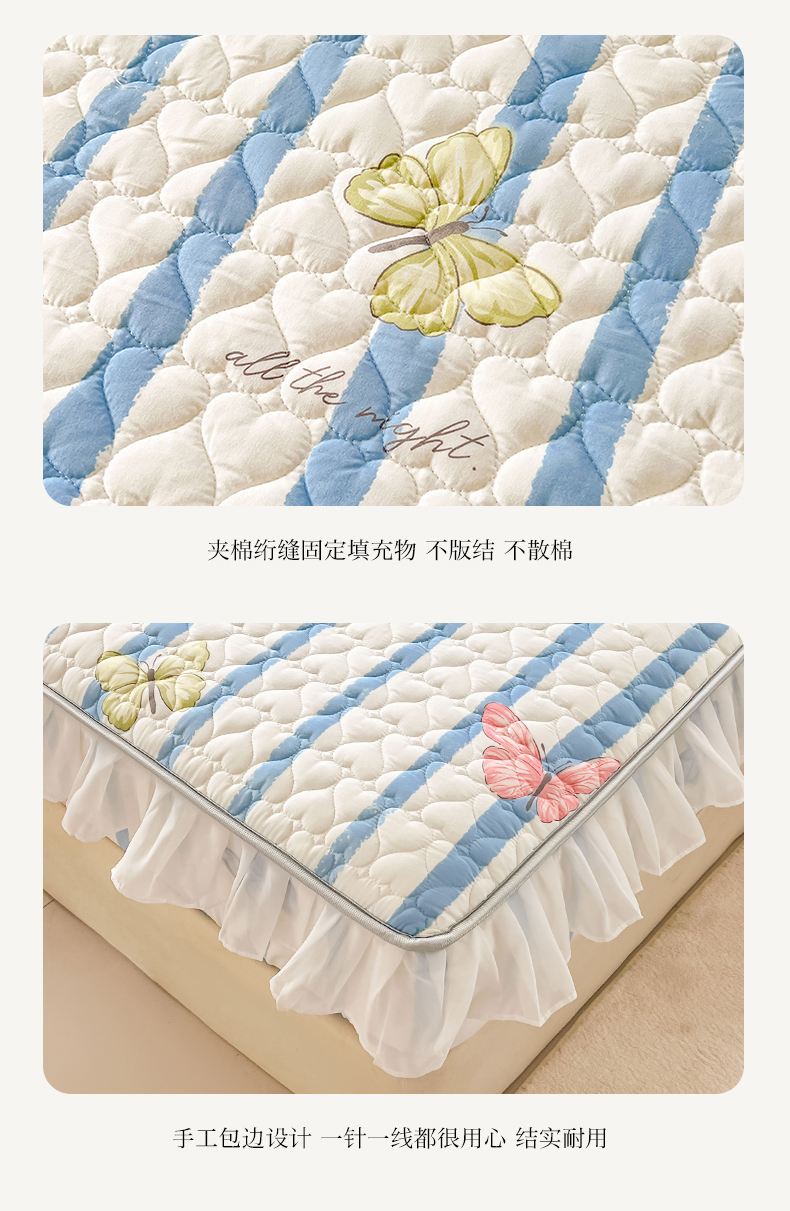 • 91家纺网 家纺一手货源 找家纺 眠势力 2025新款韩版花边夹棉床笠单件公主风四季款床垫保护套床罩 花蝴蝶