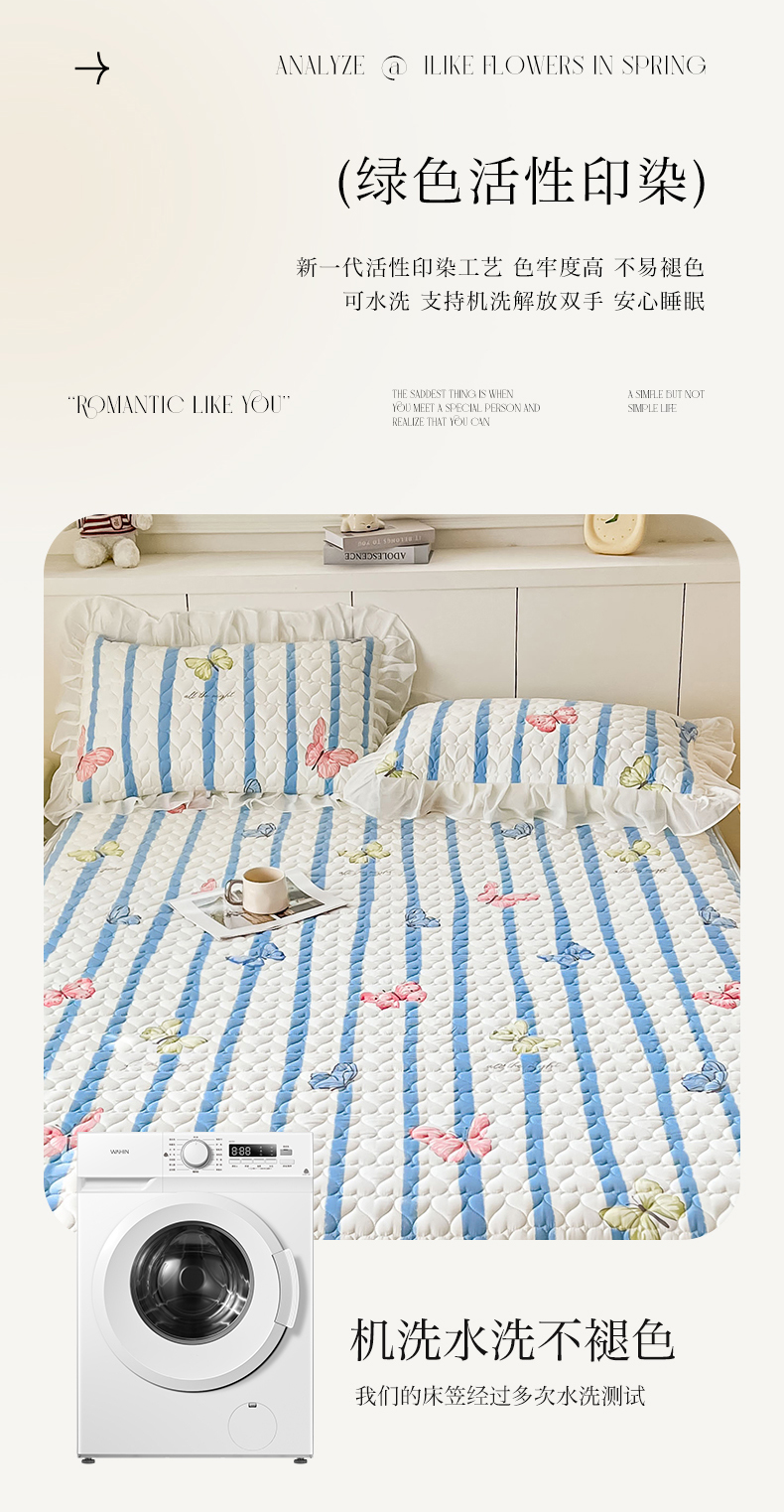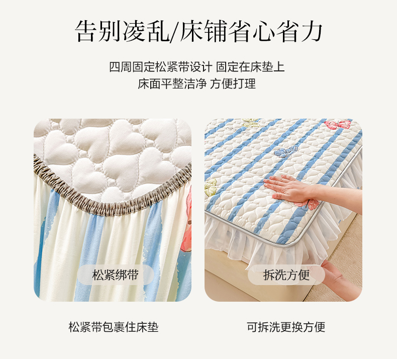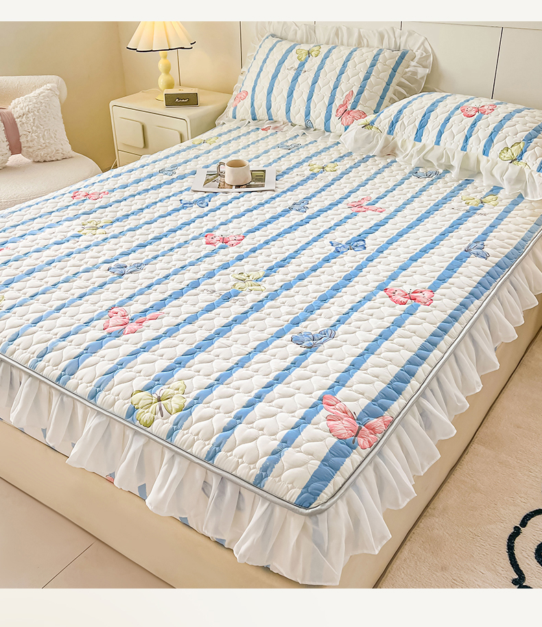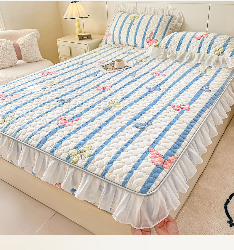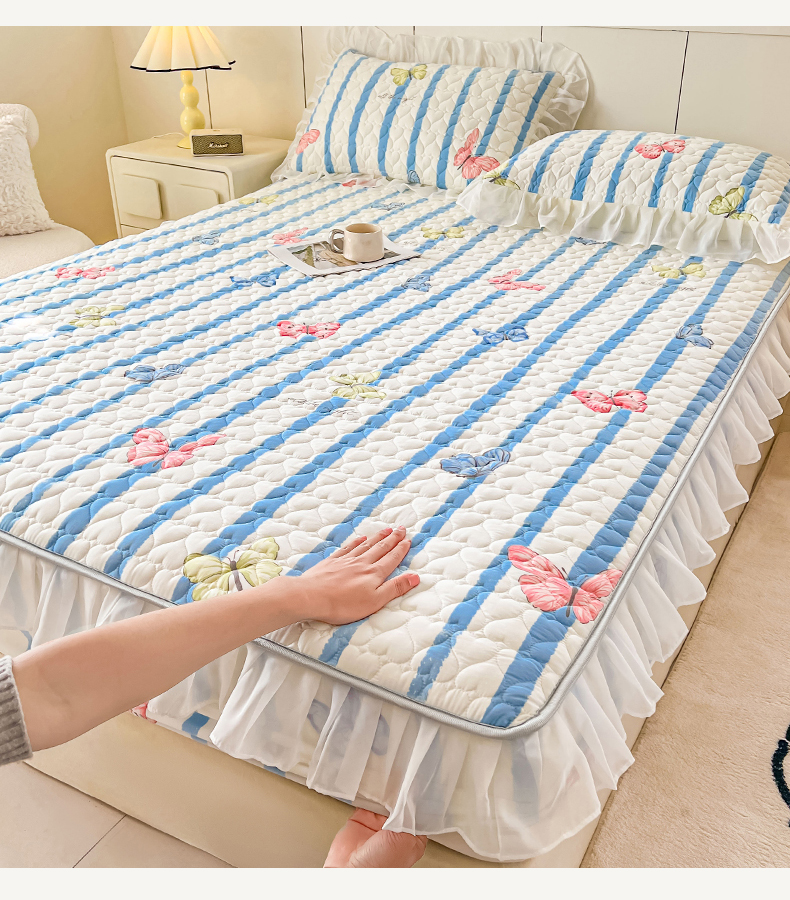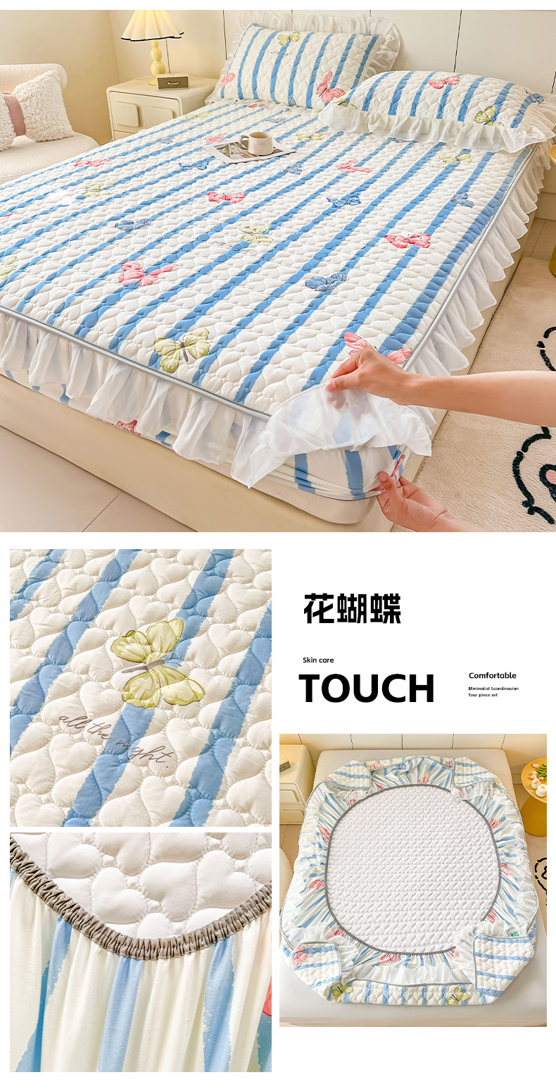 • 91家纺网 家纺一手货源 找家纺 眠势力 2025新款韩版花边夹棉床笠单件公主风四季款床垫保护套床罩 花蝴蝶