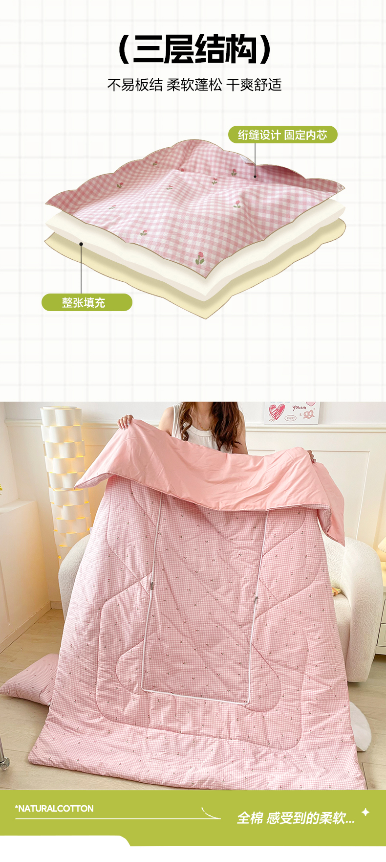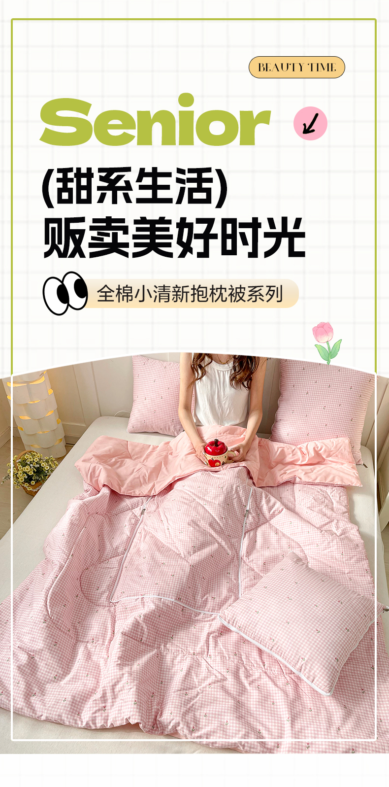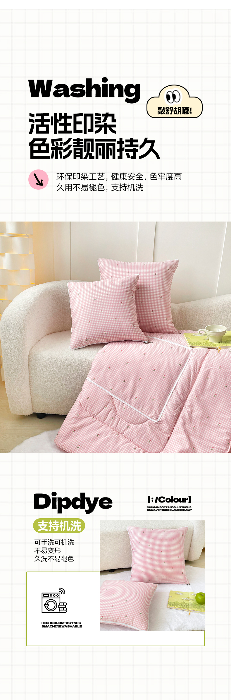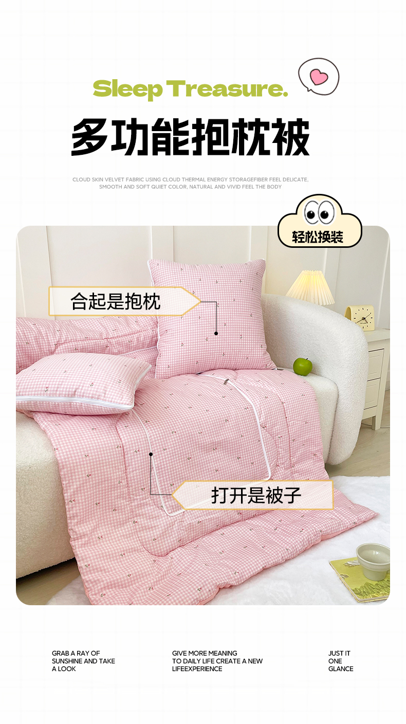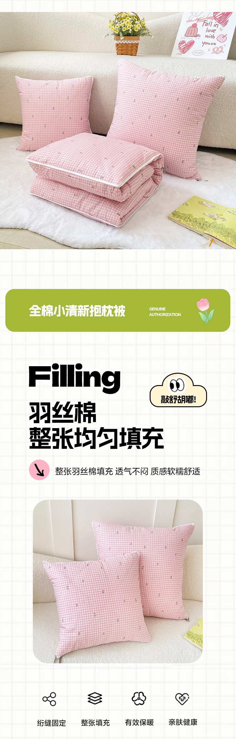 番茄+ 2025新款13370全棉印花卡通抱枕被 粉格小花粉