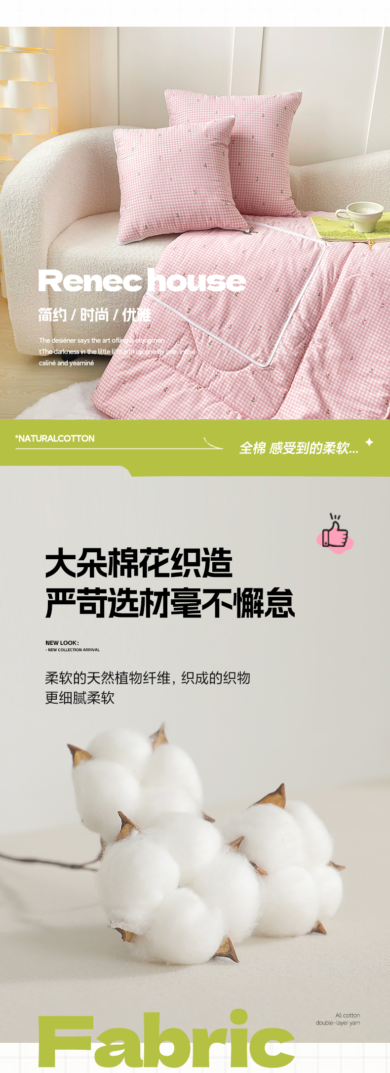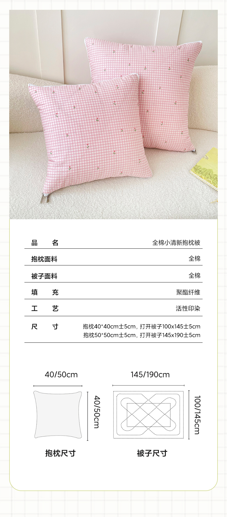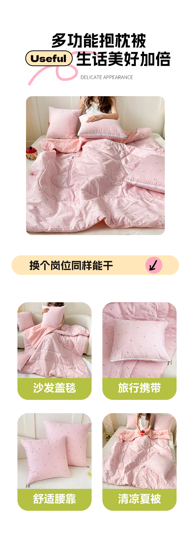商品名称:番茄+ 2025新款13370全棉印花卡通抱枕被 粉格小花粉