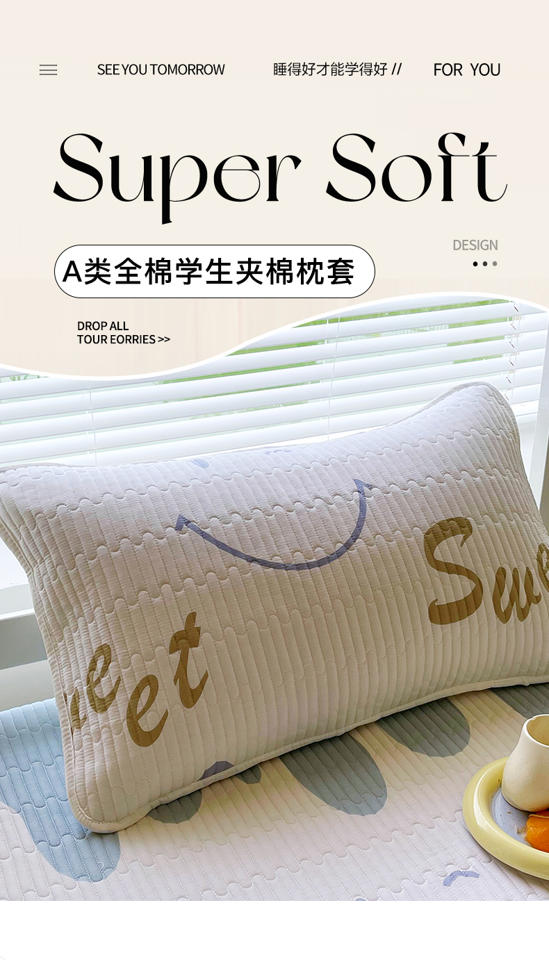 商品名称:金鑫汇家纺2025新款A类学生宿舍枕套系列单品 奶油粉