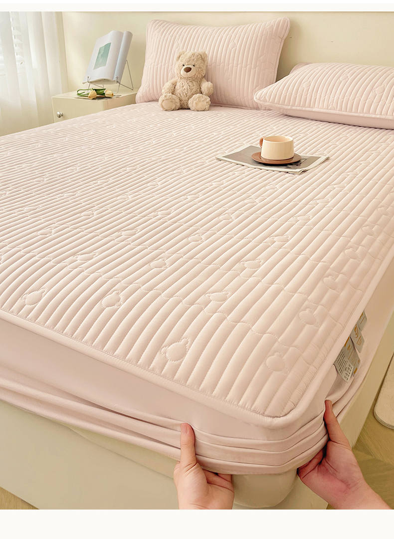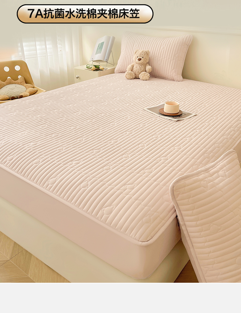 (总)雯豆家纺 2025新款复古风皱皱棉印花夹棉床笠三件套加厚床垫保护套,小南瓜,春日小狗,初夏,浪漫花语,爱尔蓝,初心,蝴蝶结小猫,花小愈,可爱TK,快乐萌宝,快乐时光,毛球团团,蘑菇仙子,奶萌小狗,小苍兰