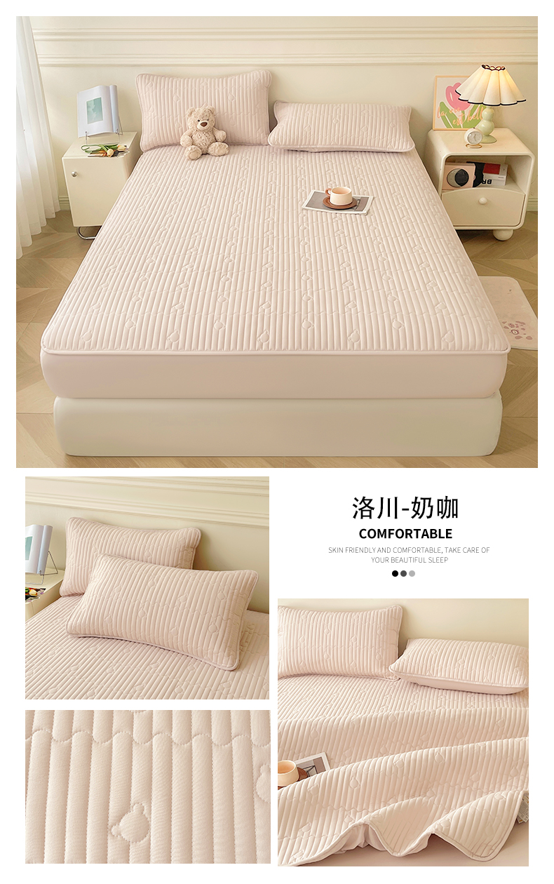 • 91家纺网 家纺一手货源 找家纺 雯豆家纺 2025新款洛川A类夹棉床笠三件套水洗棉磨毛纯色床护垫床单保护套 洛川-奶咖