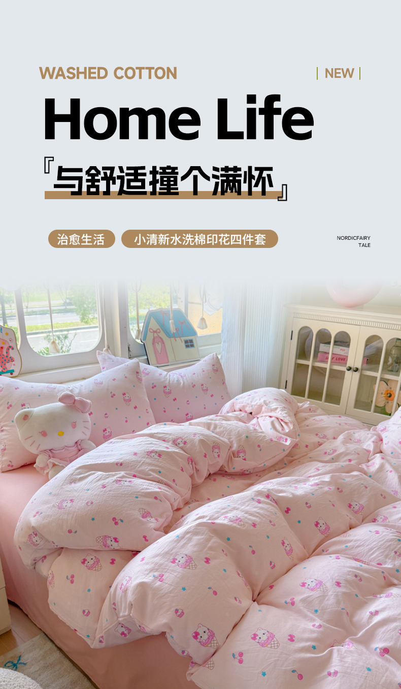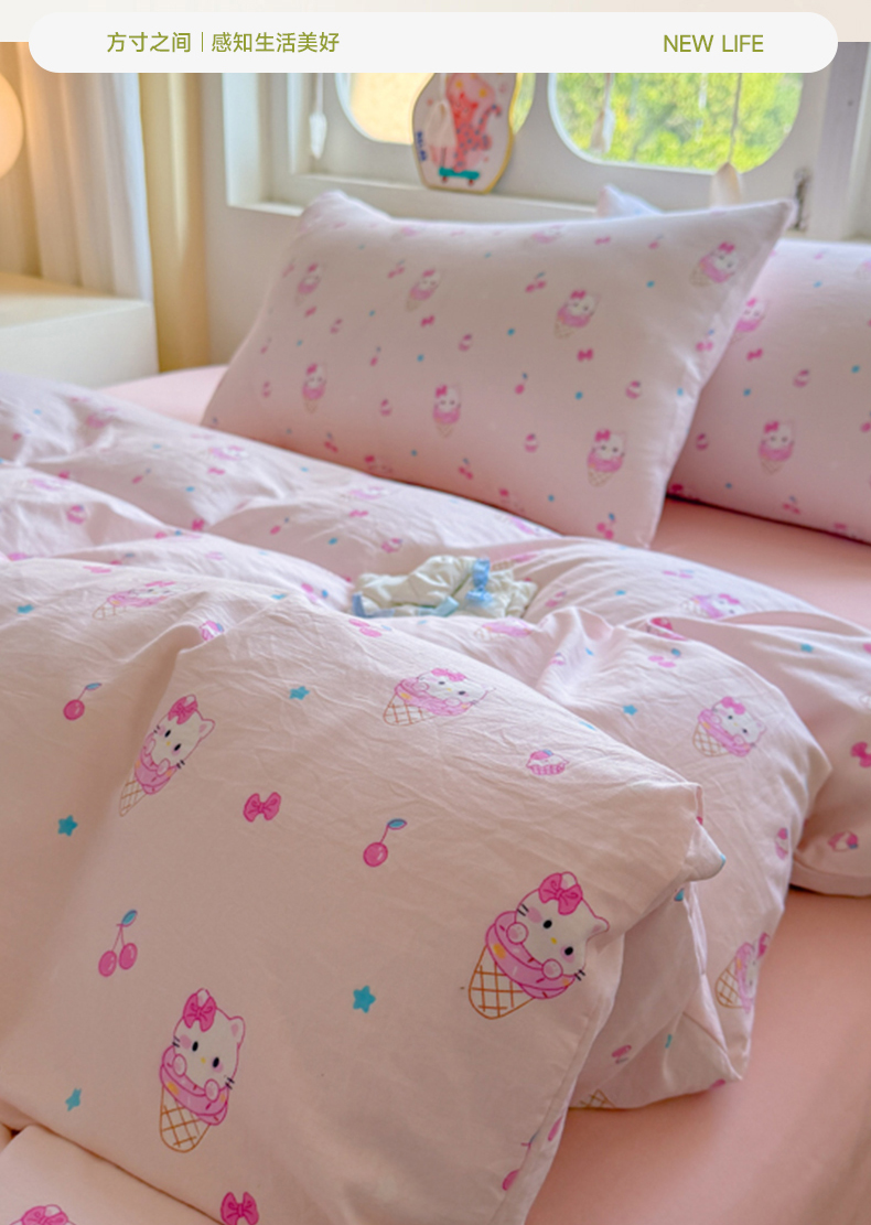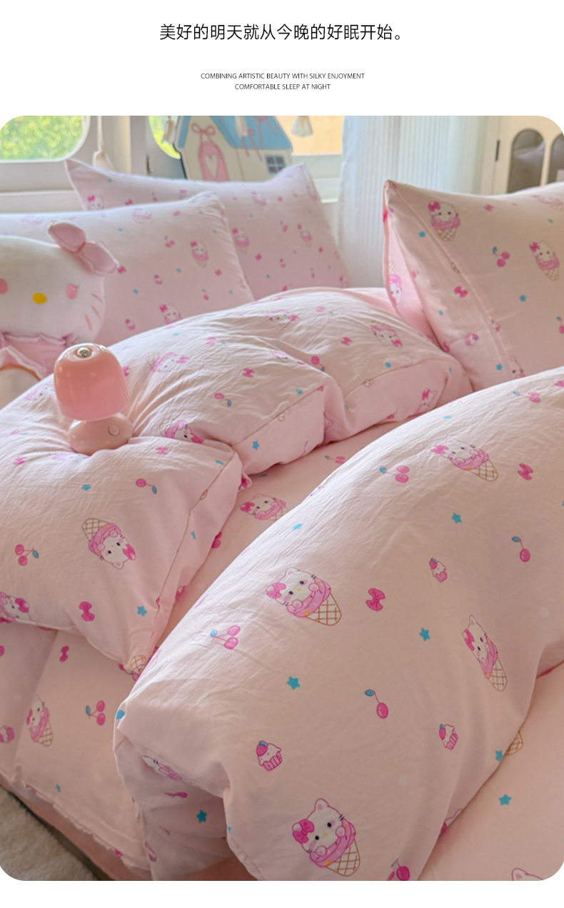 当前位置: 91家纺网 > 商品网购 > 床品套件 > 四件套 > 水洗棉四件套 > 晚爱家纺(原晚安家居) 2025新款超柔水洗棉四件套卡通小清新学生宿舍三件套 冰淇淋