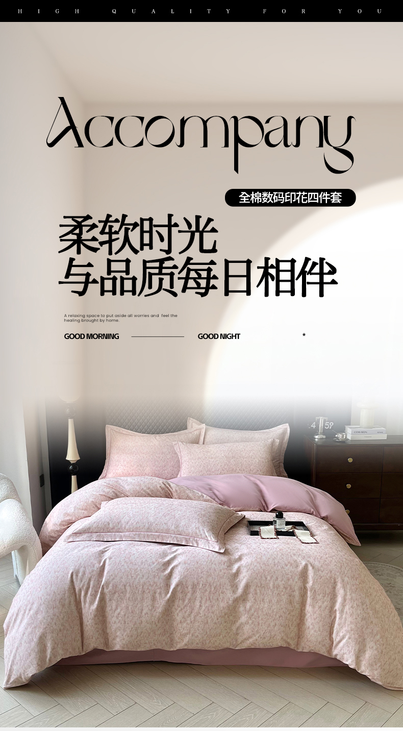 金纱玉纺家纺 2025数码印花100%棉四件套 新世纪-粉