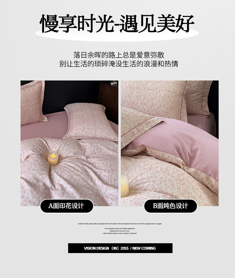 商品名称:金纱玉纺家纺 2025数码印花100%棉四件套 新世纪-粉