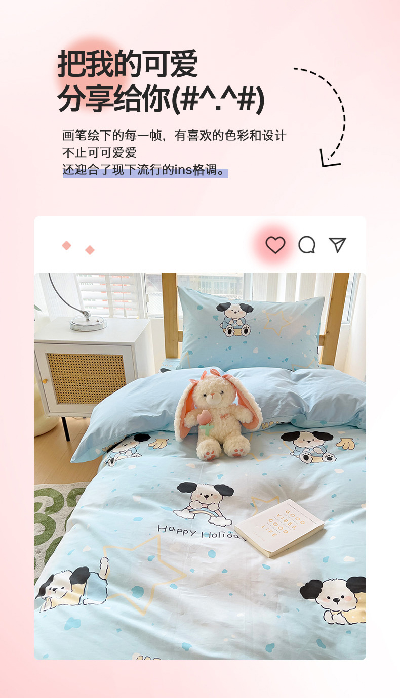 (总)名兮家居 2026跑量款全棉印花四件套,爱心小熊,遨游星际,豹纹猫咪,草莓小白兔,畅游星球,独角兽粉,独角兽蓝,费尔岛狗狗,狐兔小分队,蓝格小狗,萌宠-蓝,萌宠-米,迷你熊,奶油兔兔,暖暖小马梦,浅蓝星梦,软糖点点,贪吃小萌星,汪汪小队,幸运字母狗,樱桃蝴蝶结,远航