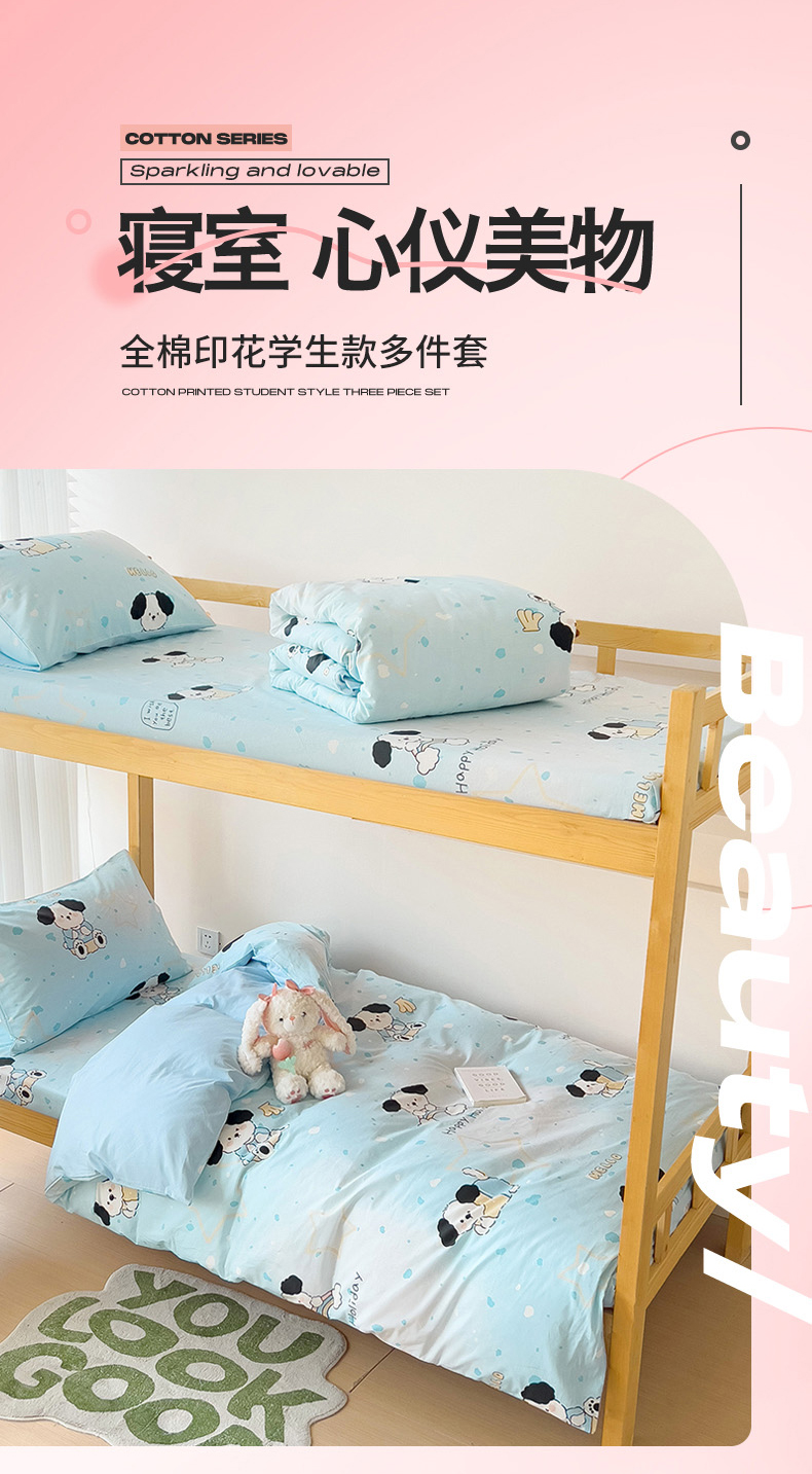 (总)名兮2025新款全棉纯棉13372学生床多件套