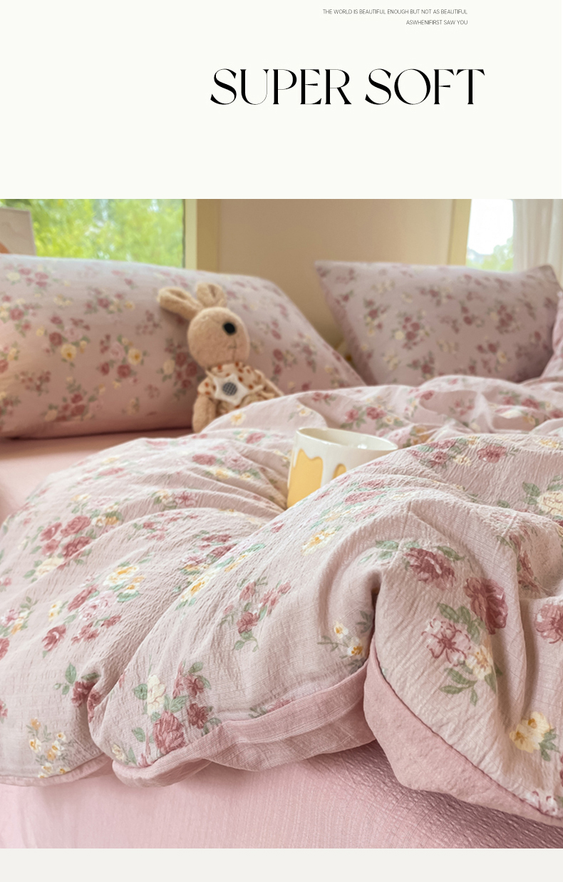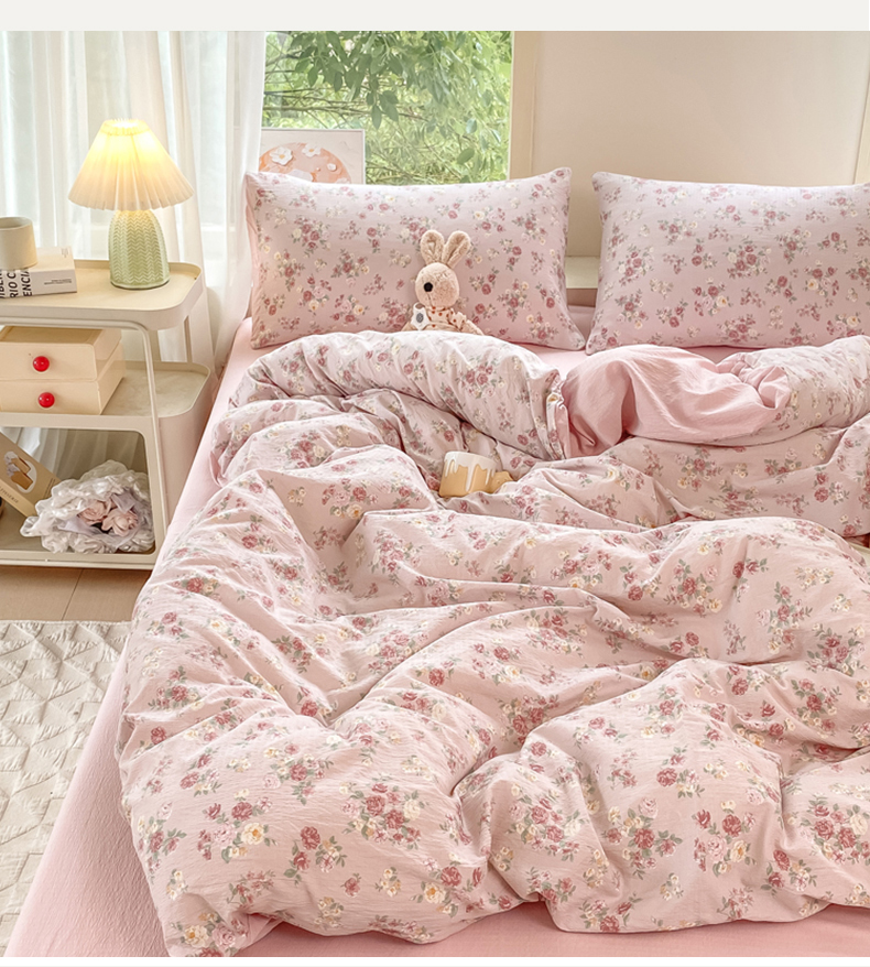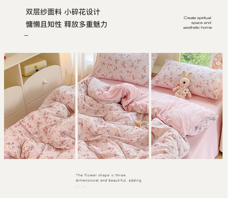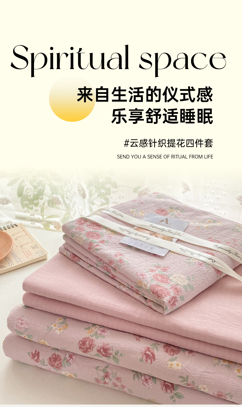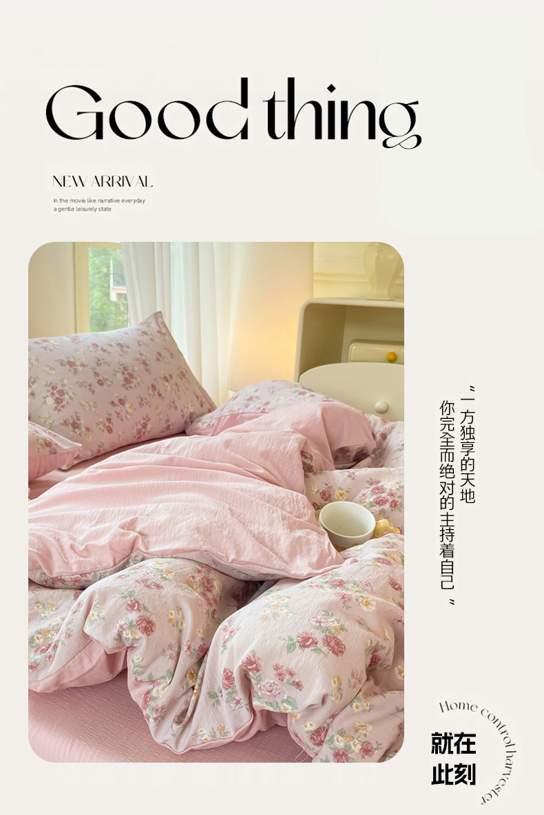 当前位置: 91家纺网 > 商品网购 > 床品套件 > 四件套 > 双层纱四件套 > 雅阁尔家纺 2025新款直播小红书ins风针织提花双层纱四件套小碎花被套床笠三件套-平铺 玫瑰物语