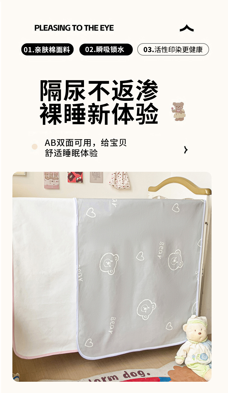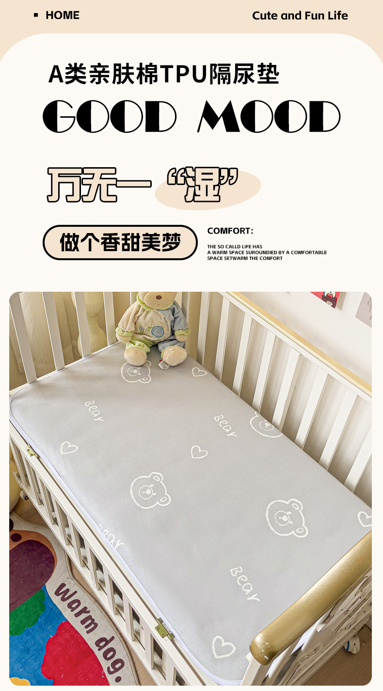 当前位置: 91家纺网 > 商品网购 > 床垫/床褥 > 普通床垫 > 富馨莱 2025年新款隔尿垫婴儿老人防水垫 熊灰灰