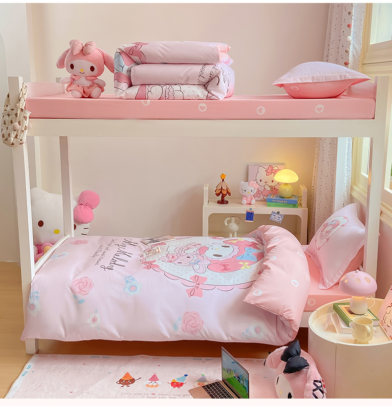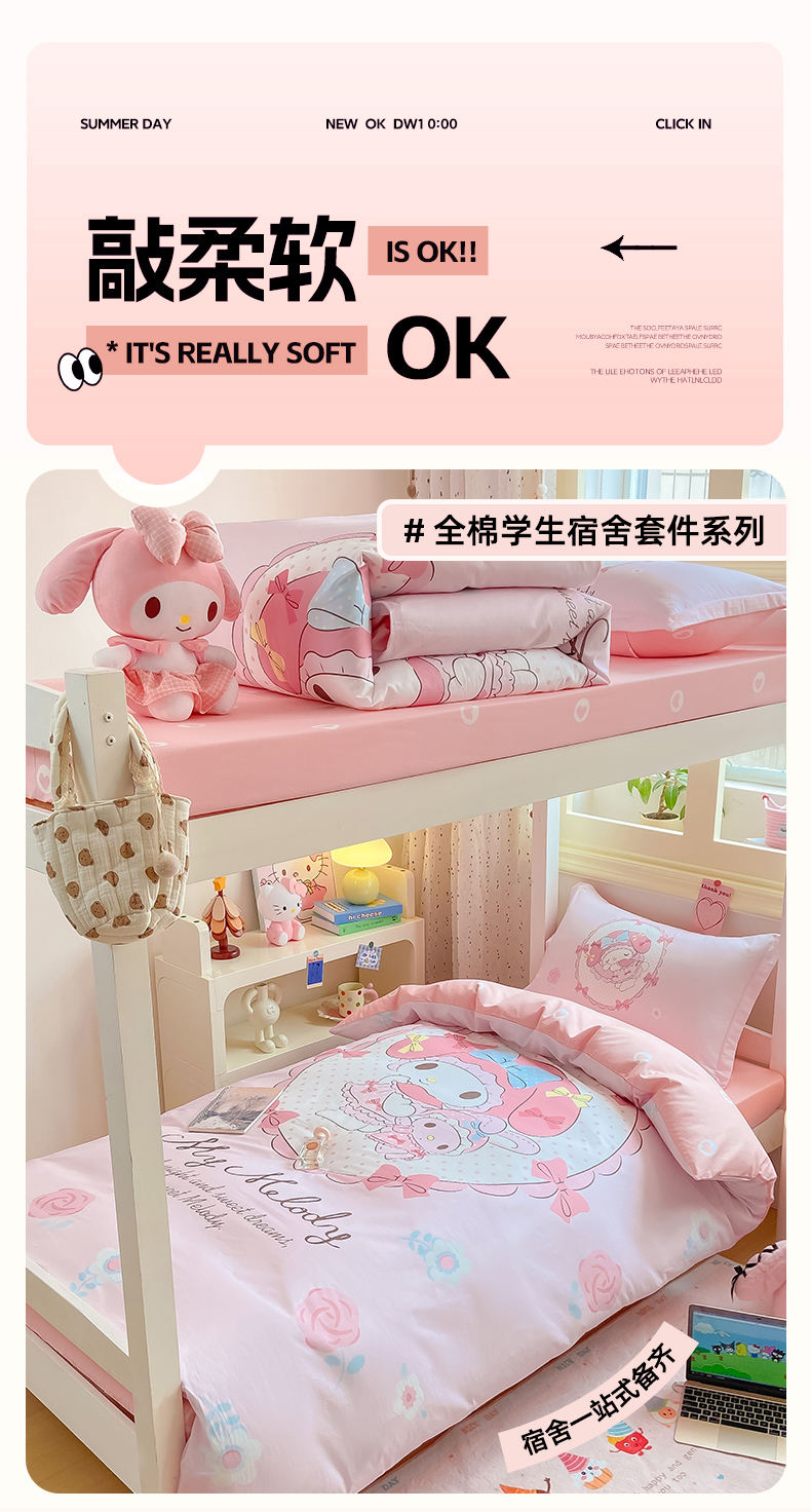 商品名称:(总)博雅 2025春夏新款三丽鸥全棉纯棉卡通学生宿舍三件套上下铺三件套-大版【含防伪标】