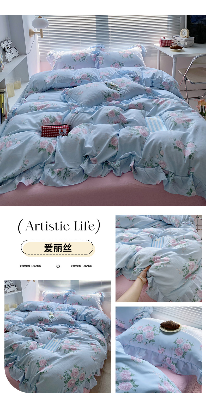 当前位置: 91家纺网 > 商品网购 > 床品套件 > 四件套 > 水洗棉四件套 > 芷凡家纺2025新款A类加厚超柔水洗棉花边款韩式四件套-风格二 爱丽丝