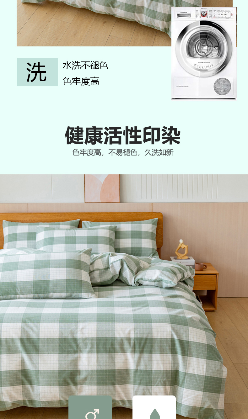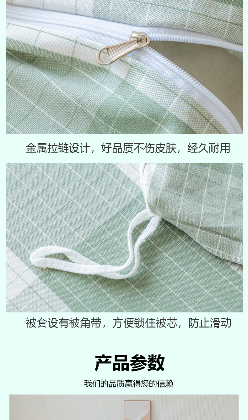 当前位置: 91家纺网 > 商品网购 > 床品套件 > 四件套 > 全棉普通四件套 > 居美良品 2025新款100%全棉色织老粗布四件套 素雅-绿格