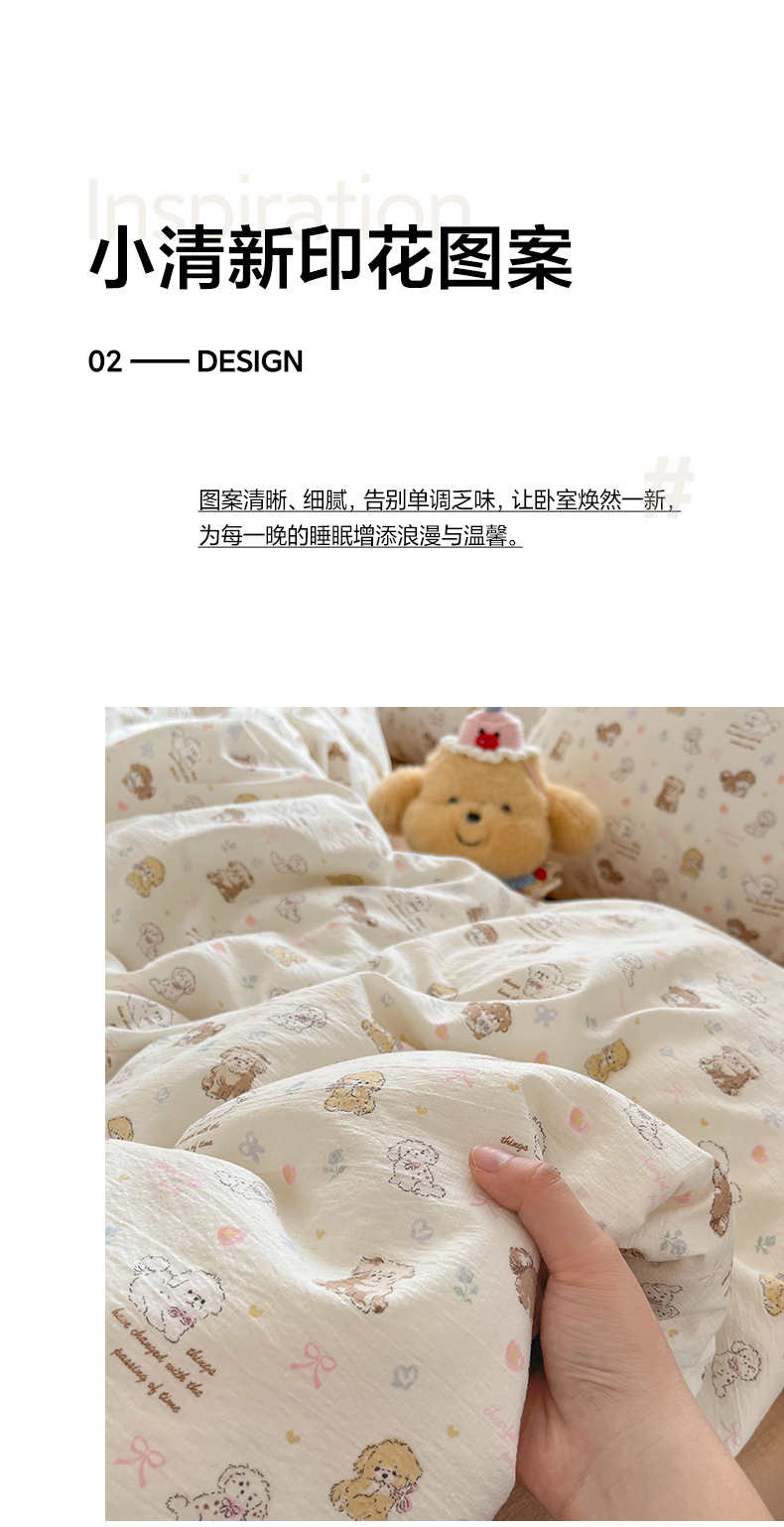当前位置: 91家纺网 > 商品网购 > 床品套件 > 四件套 > 其它四件套 > 彩韵家纺 2025新款超柔云感m印花双层纱四件套 狗狗聚会
