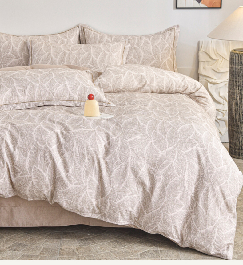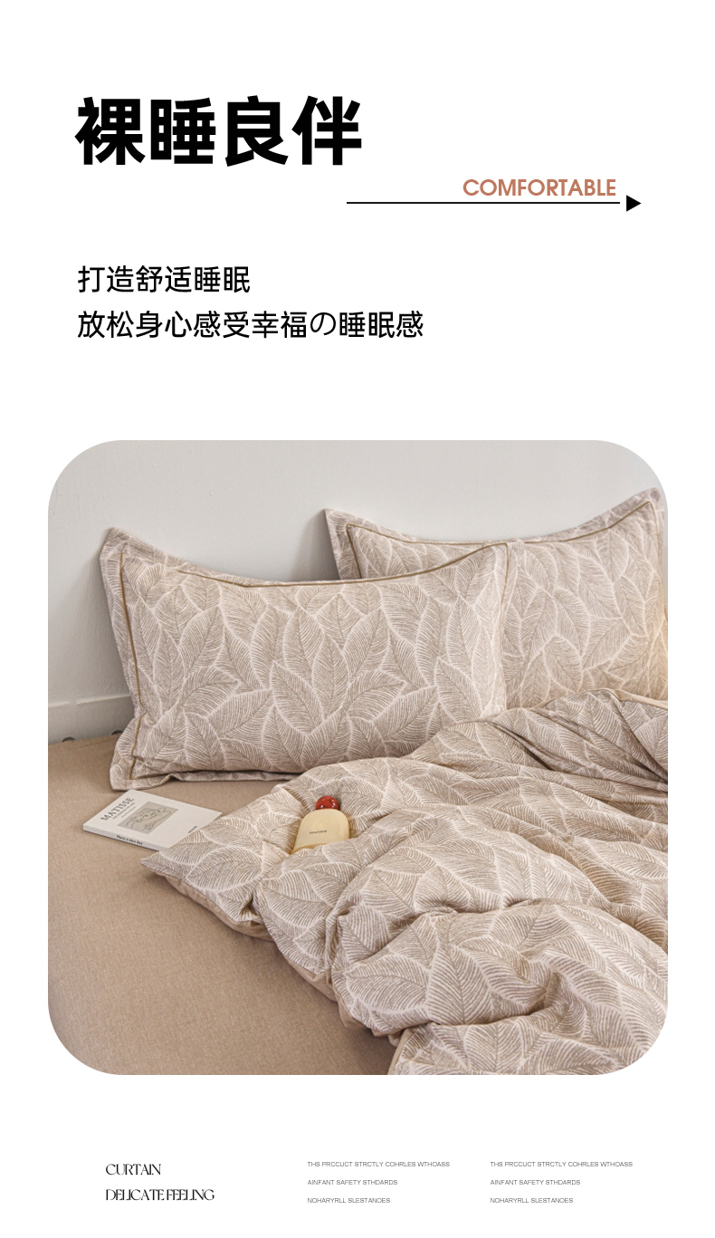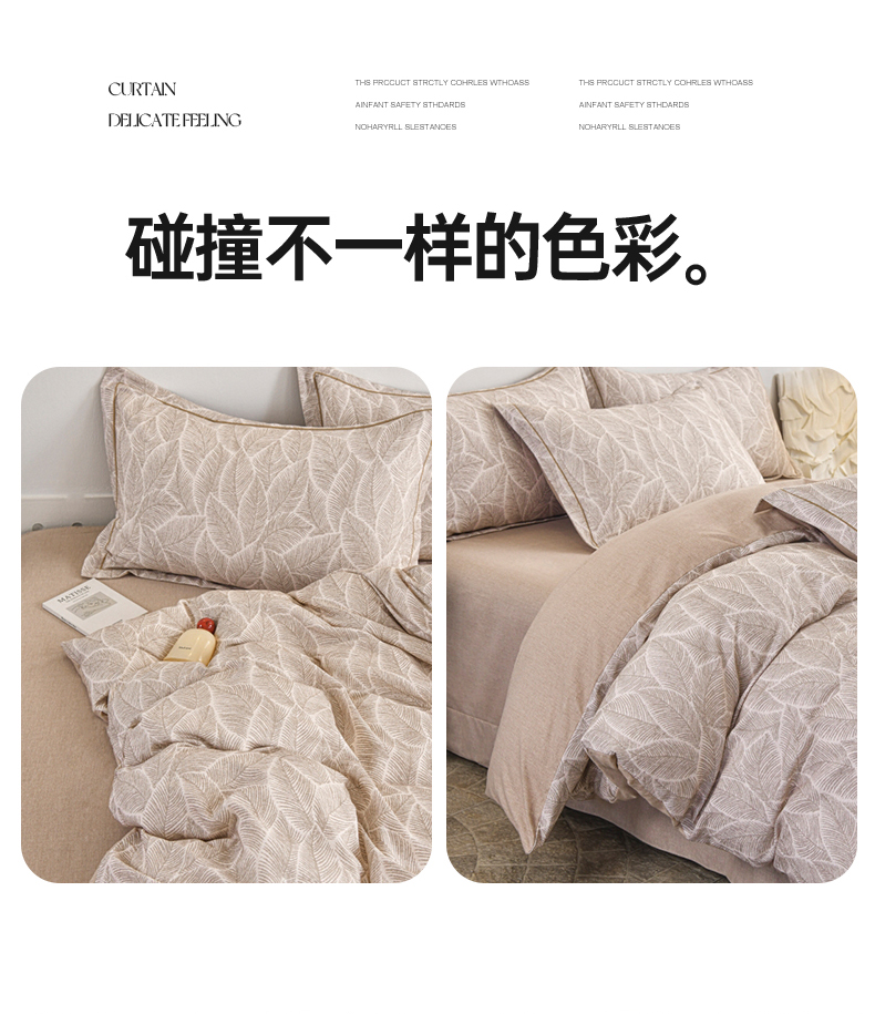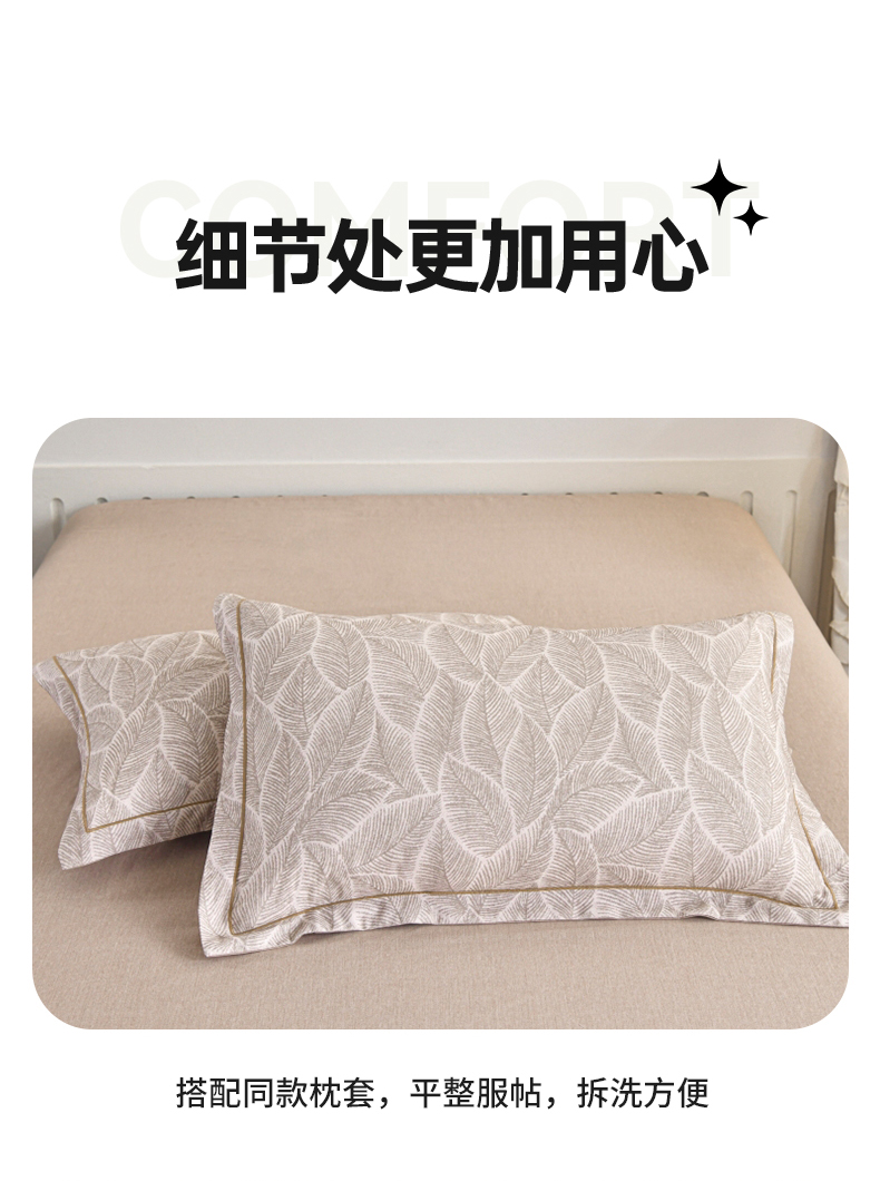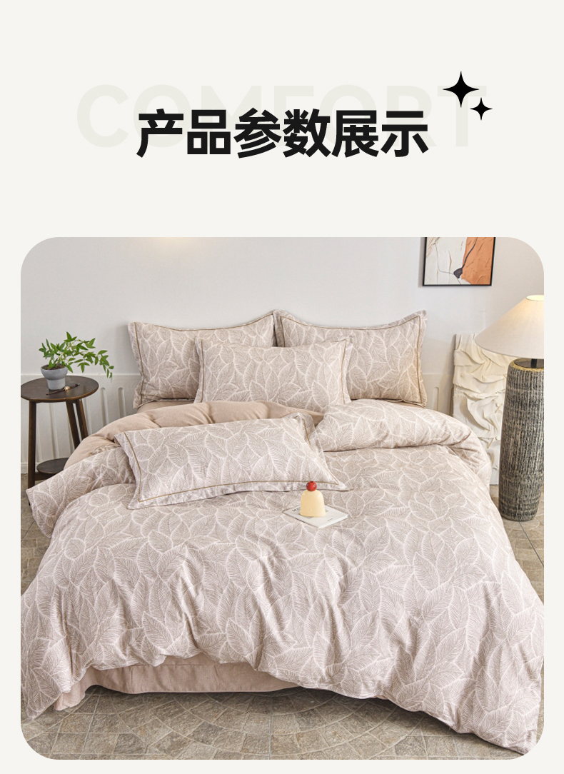 商品名称:磨毛世家家纺2025新款金太阳铂金四件套加厚四件套 叶语