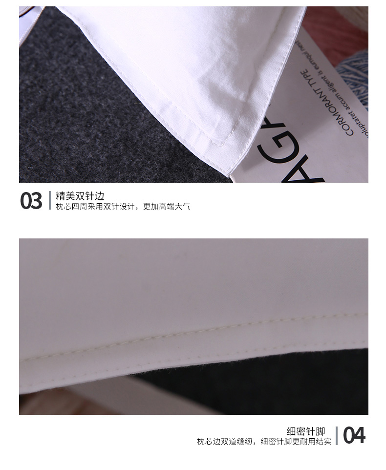 文黛家居 2025新款全棉13372双边羽丝绒枕一对,低枕48*74*2,中枕48*74*2,高枕48*74*2