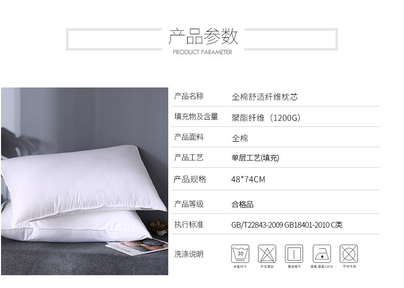 商品名称:文黛家居 2025新款全棉纯棉133100星级酒店专供双针羽丝绒软枕芯 白色 48x74cm/只(不带标)