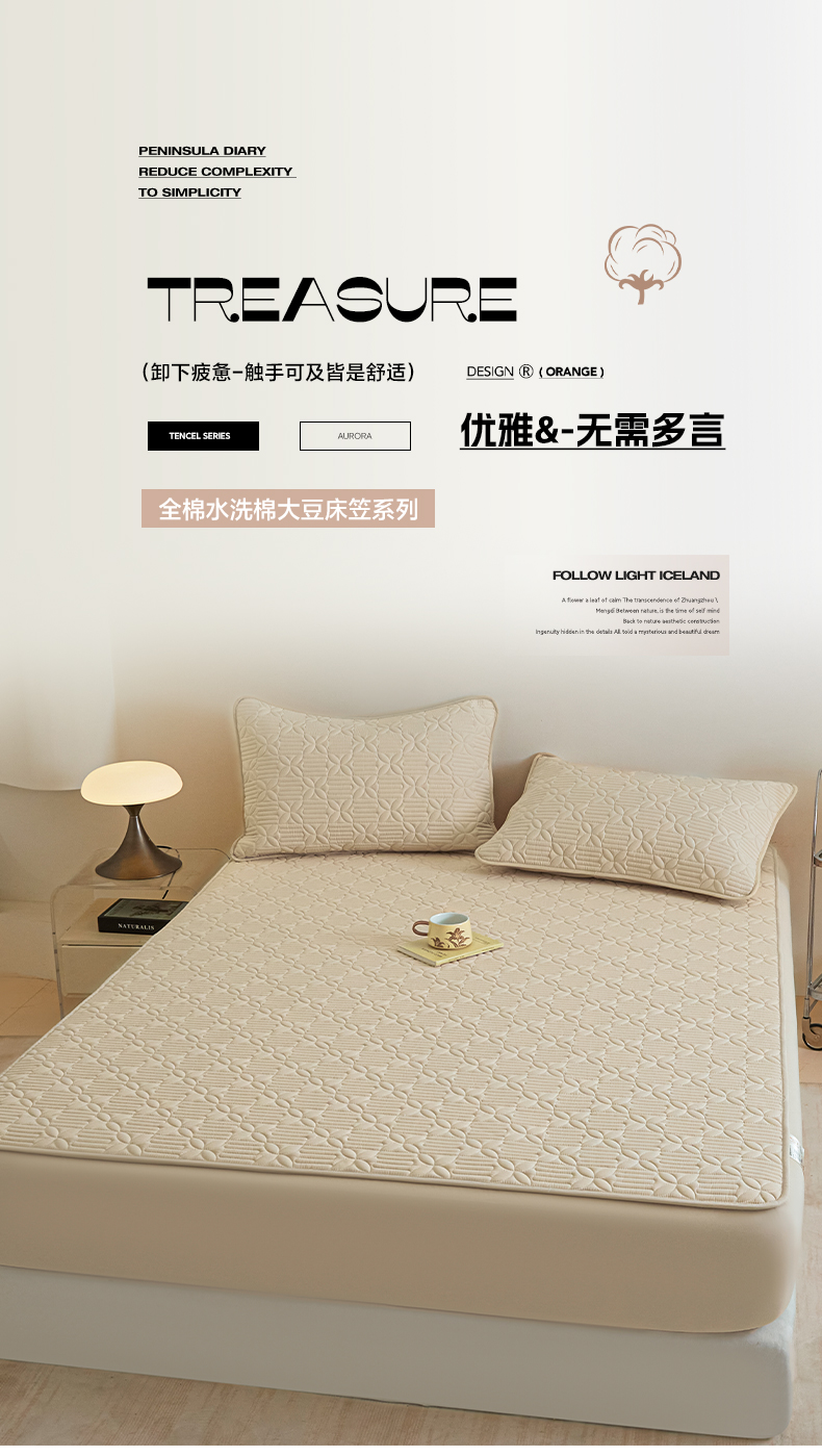 • 91家纺网 家纺一手货源 找家纺 芬晴家纺 2025新款A类全棉纯棉水洗棉大豆床笠单床笠单品床笠单件床笠 遇见-浅卡