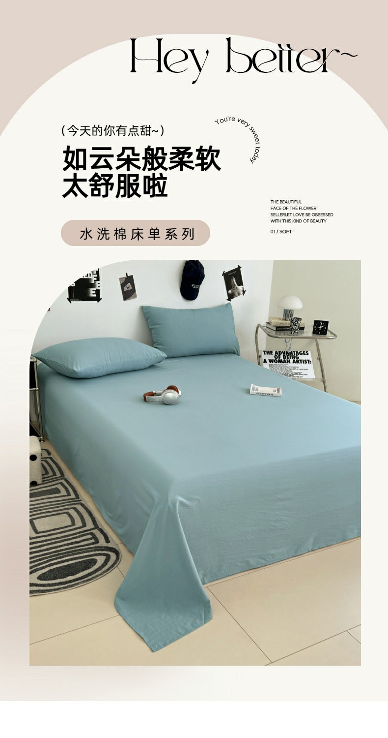 • 91家纺网 家纺一手货源 找家纺 优佳优品 2025新款亲肤水洗棉纯色单品床单 品悦