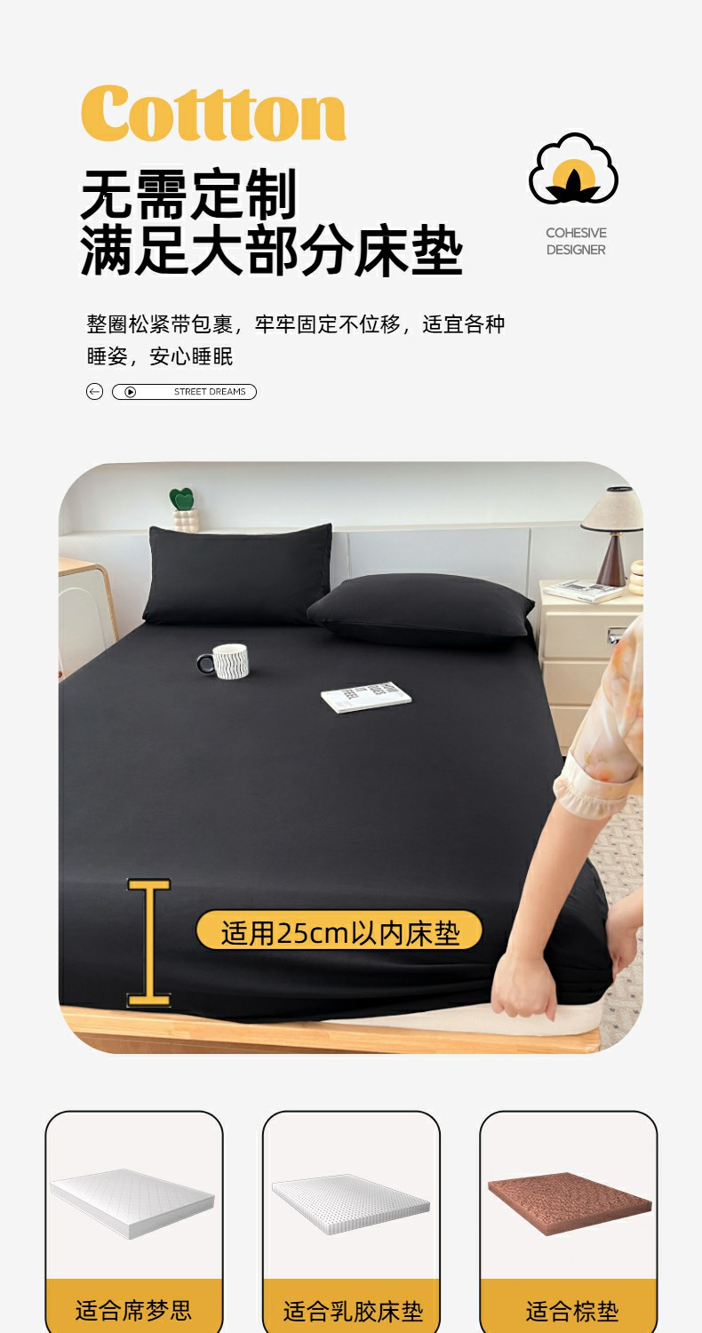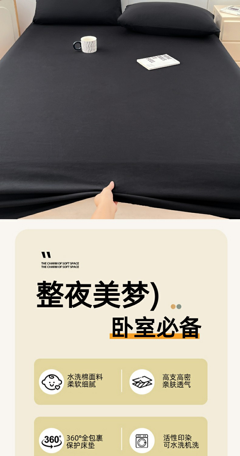优佳优品 2025新款亲肤水洗棉纯色单品床笠 静夜