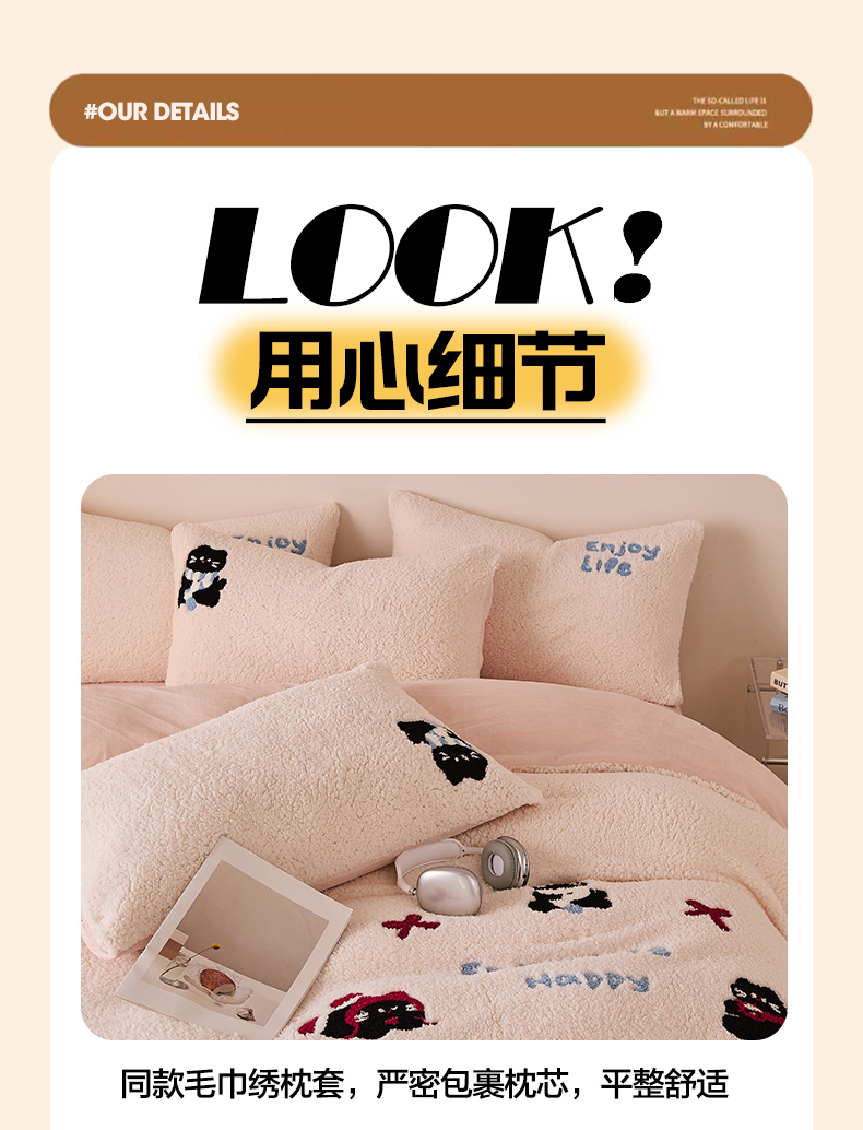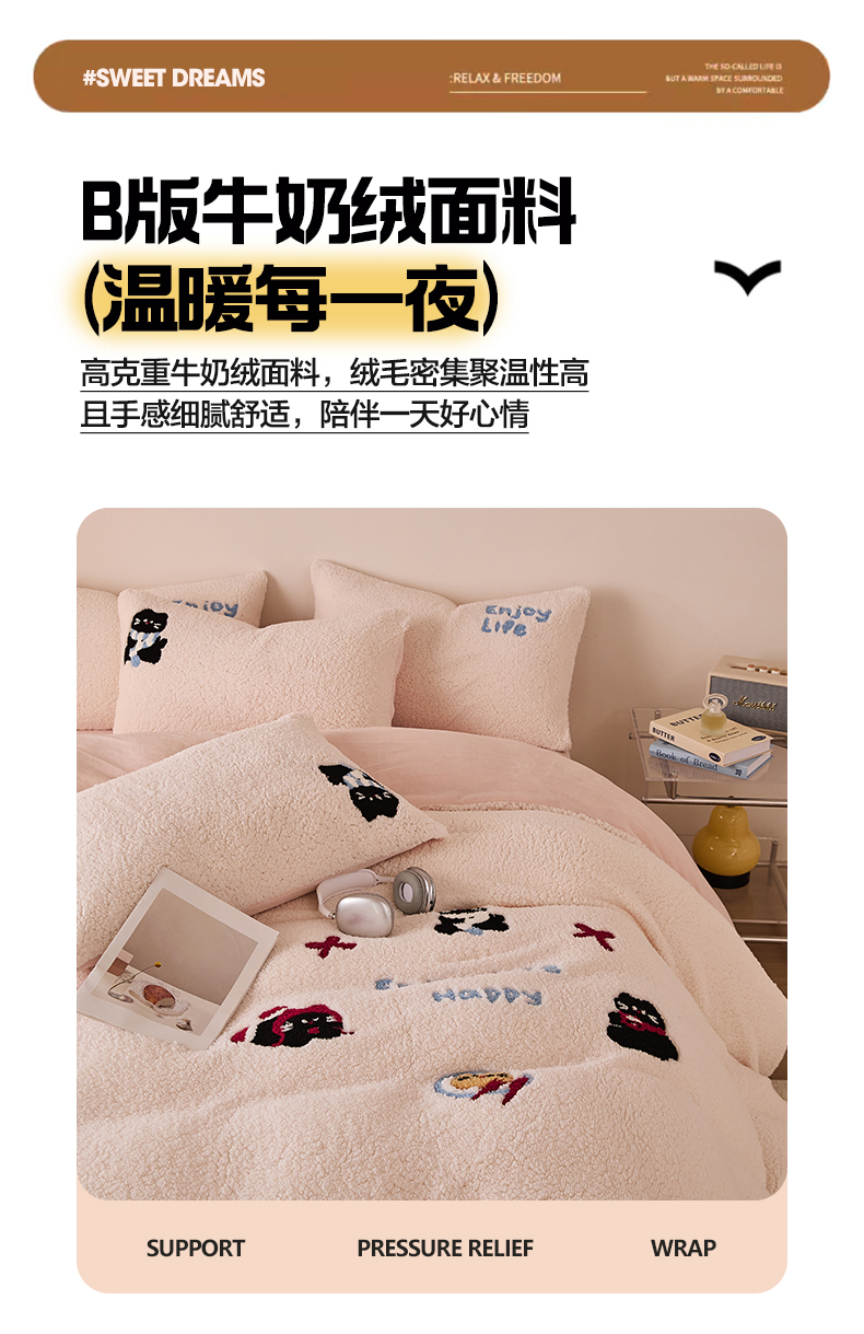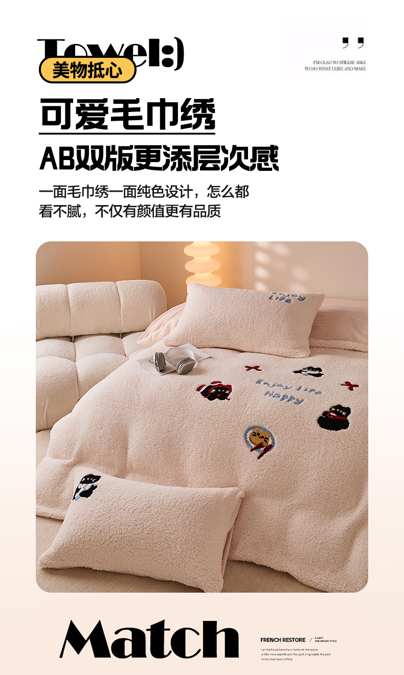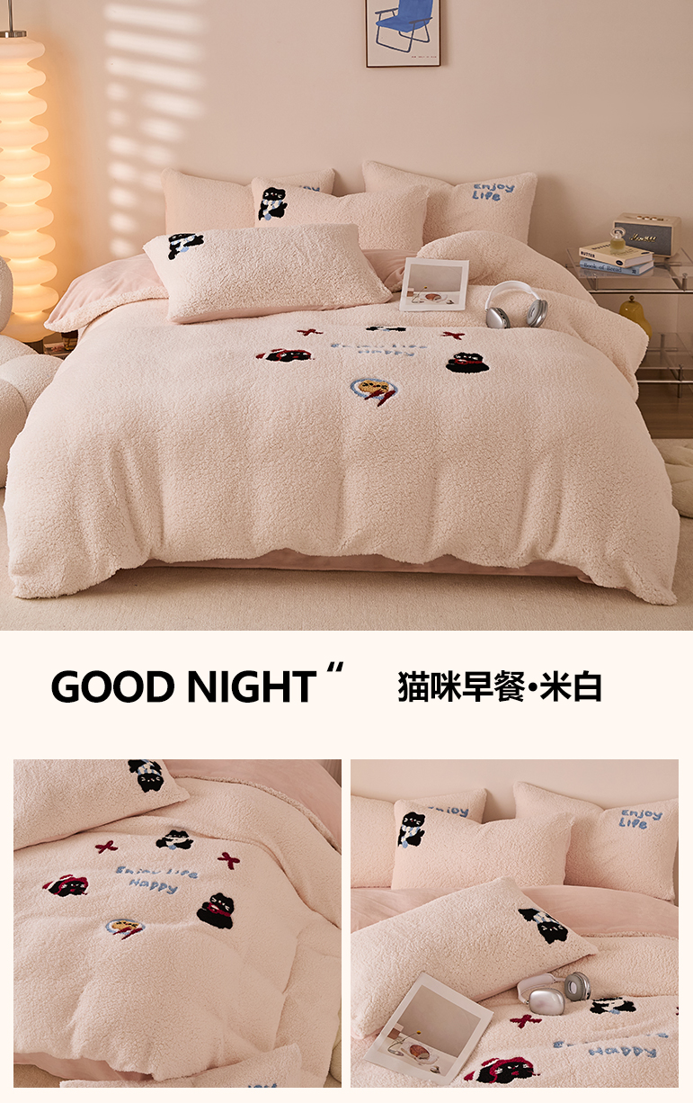 当前位置: 91家纺网 > 商品网购 > 床品套件 > 四件套 > 牛奶绒四件套 > 曼町家居 2025新款羊羔绒牛奶绒毛巾绣四件套 猫咪早餐·米白
