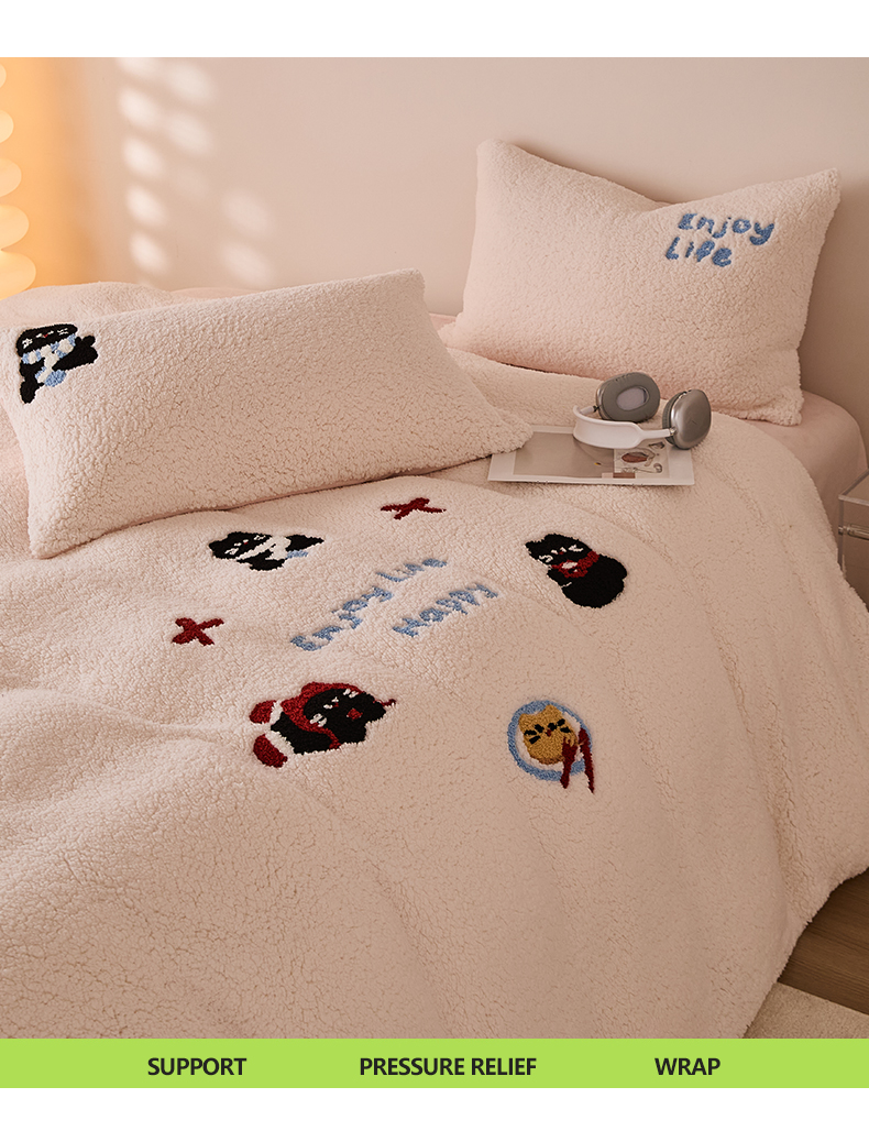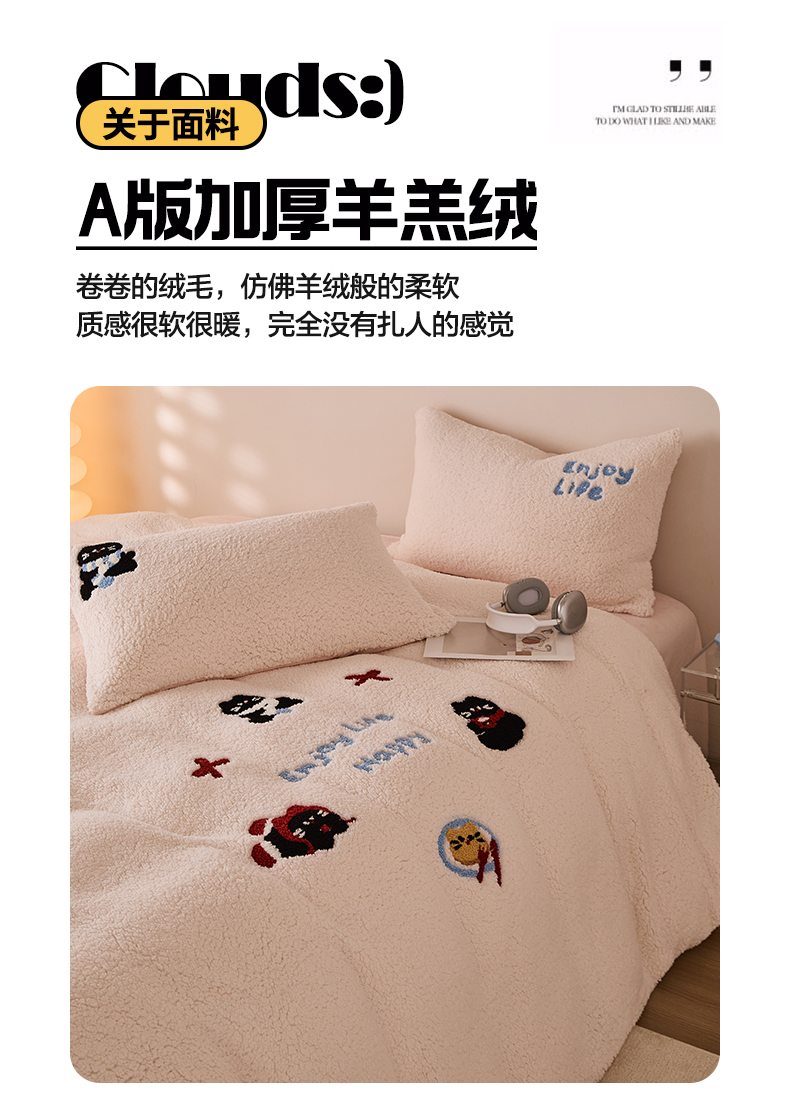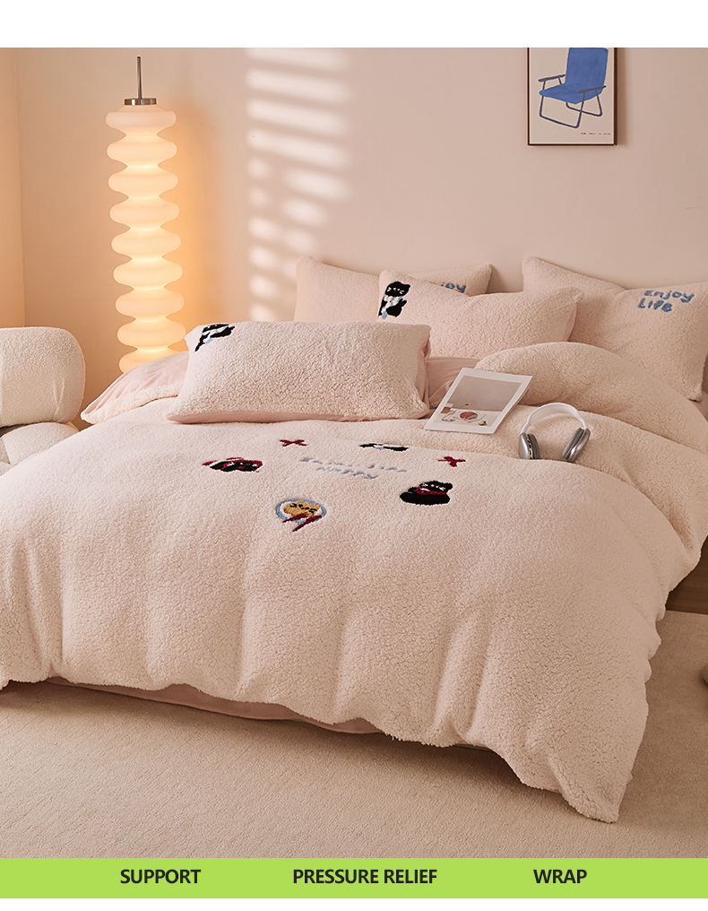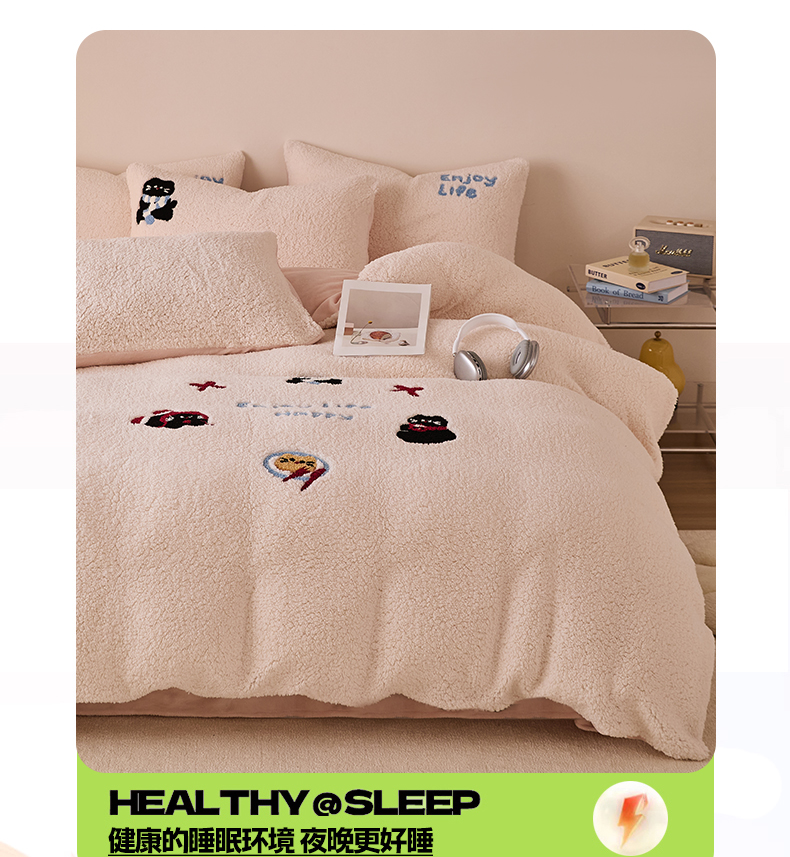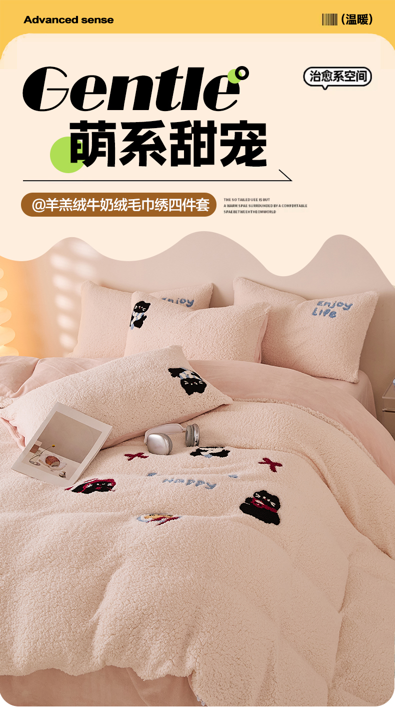 当前位置: 91家纺网 > 商品网购 > 床品套件 > 四件套 > 牛奶绒四件套 > 曼町家居 2025新款羊羔绒牛奶绒毛巾绣四件套 猫咪早餐·米白