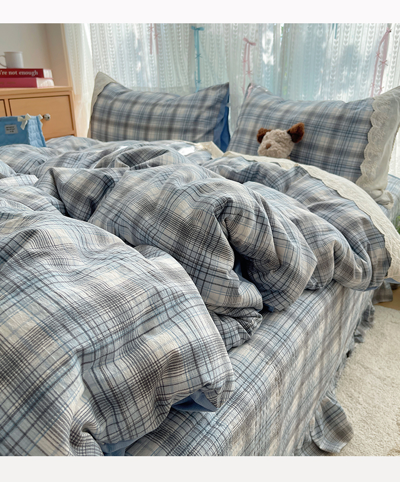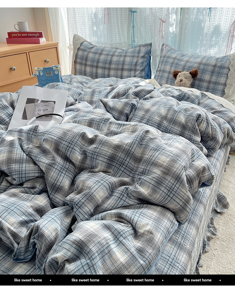 (总)轻奢坊 2025新款125g高克重撒欢复古格子蕾丝花边四件套