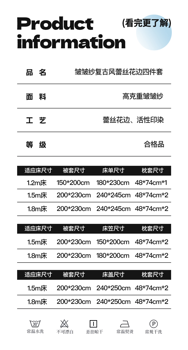 商品名称:(总)轻奢坊 2025新款125g高克重撒欢复古格子蕾丝花边四件套