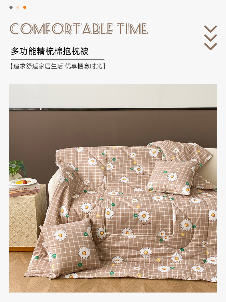 商品名称:新奇异 2025新款雏菊秘境系列抱枕被 慢生活-绿色