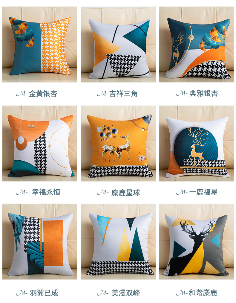 (总)新奇异 2025新款橙色仿真丝抱枕(支持定制),组合图仅供展示,典雅银杏,和谐麋鹿,吉祥三角,金黄银杏,美漫双峰,麋鹿星球,前程似锦,幸福永恒,一鹿福星,羽翼已成