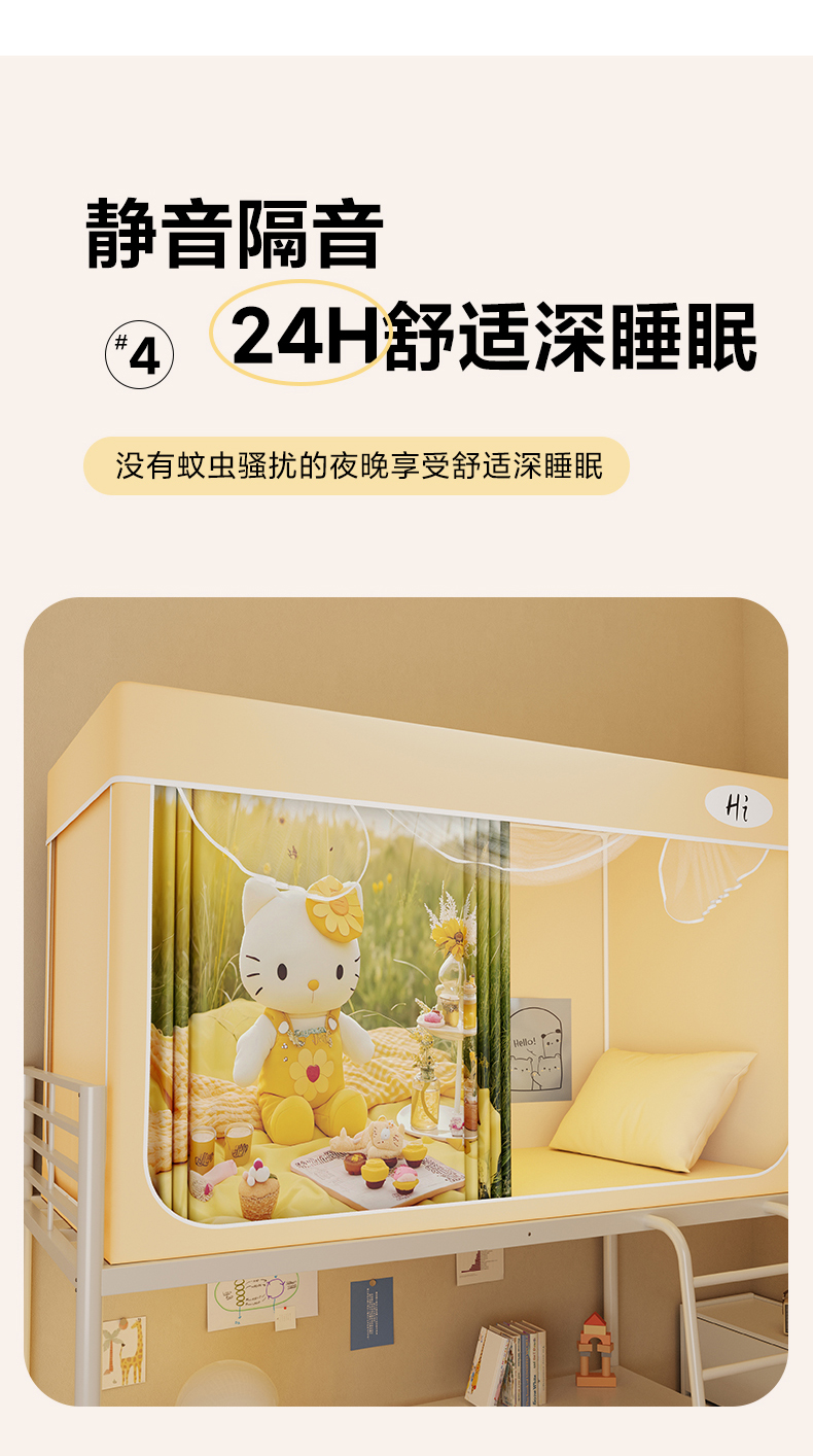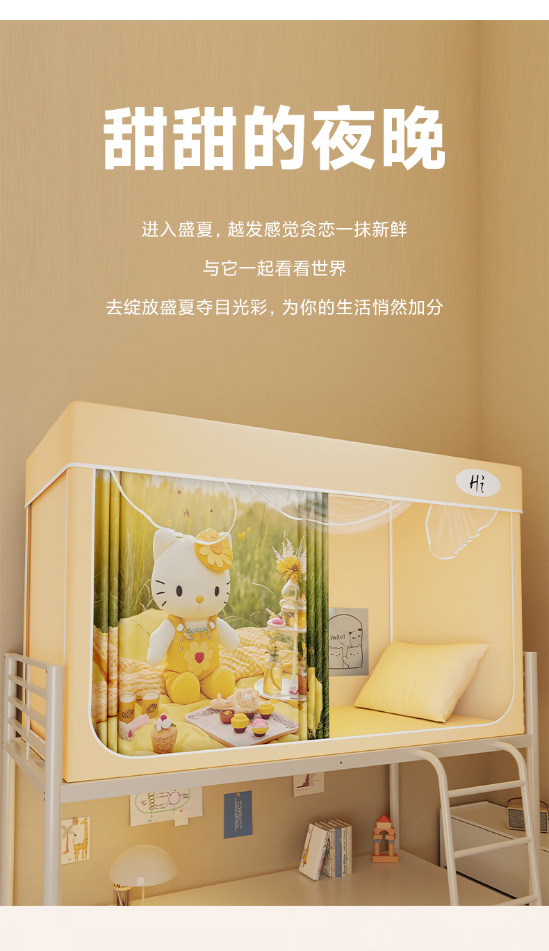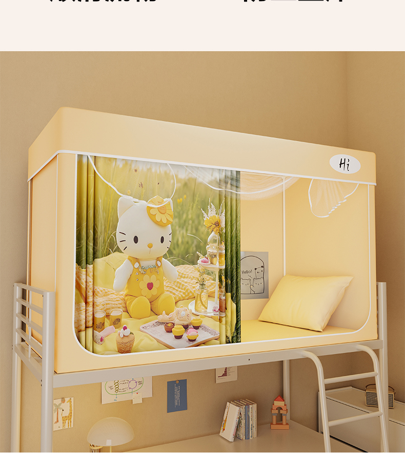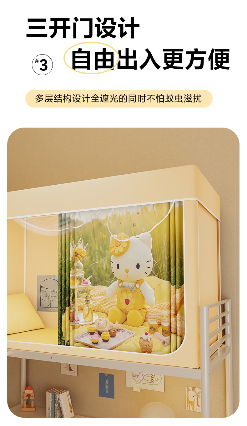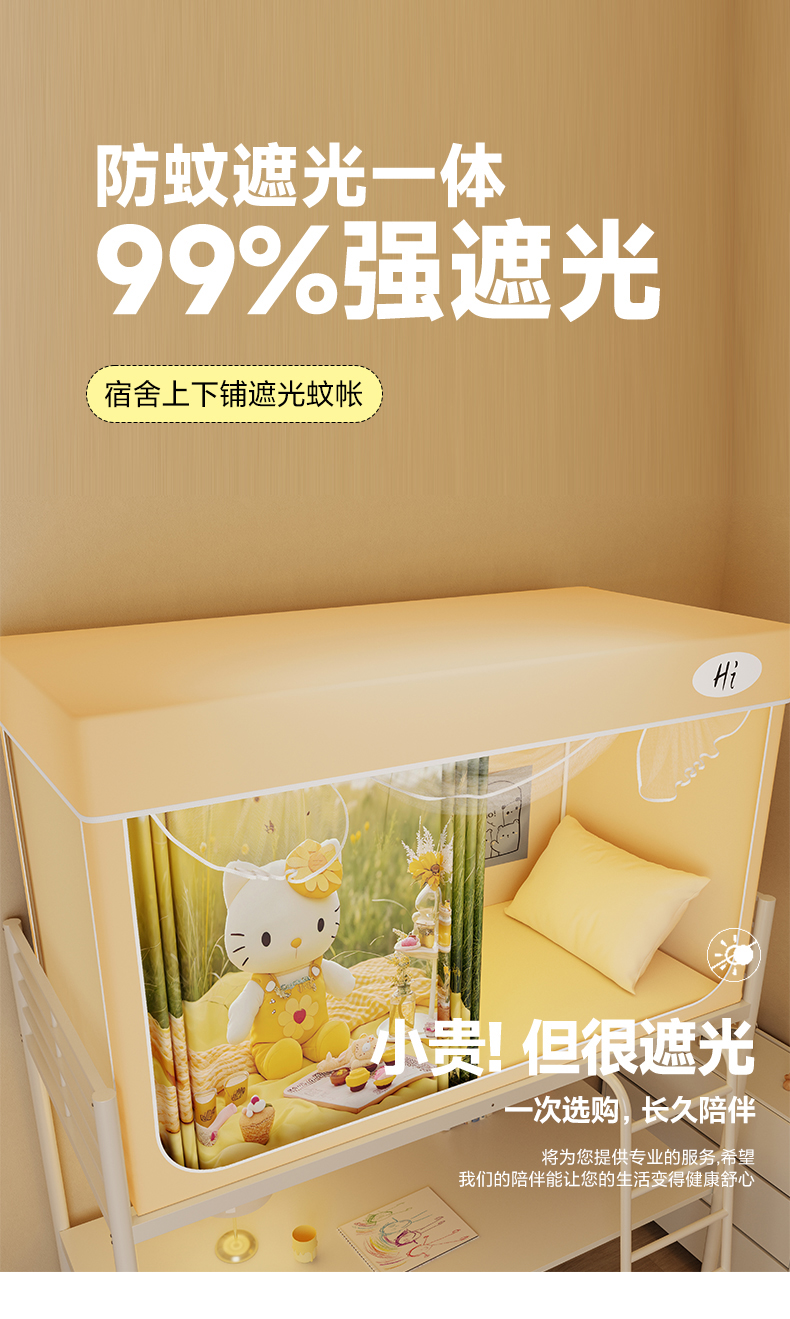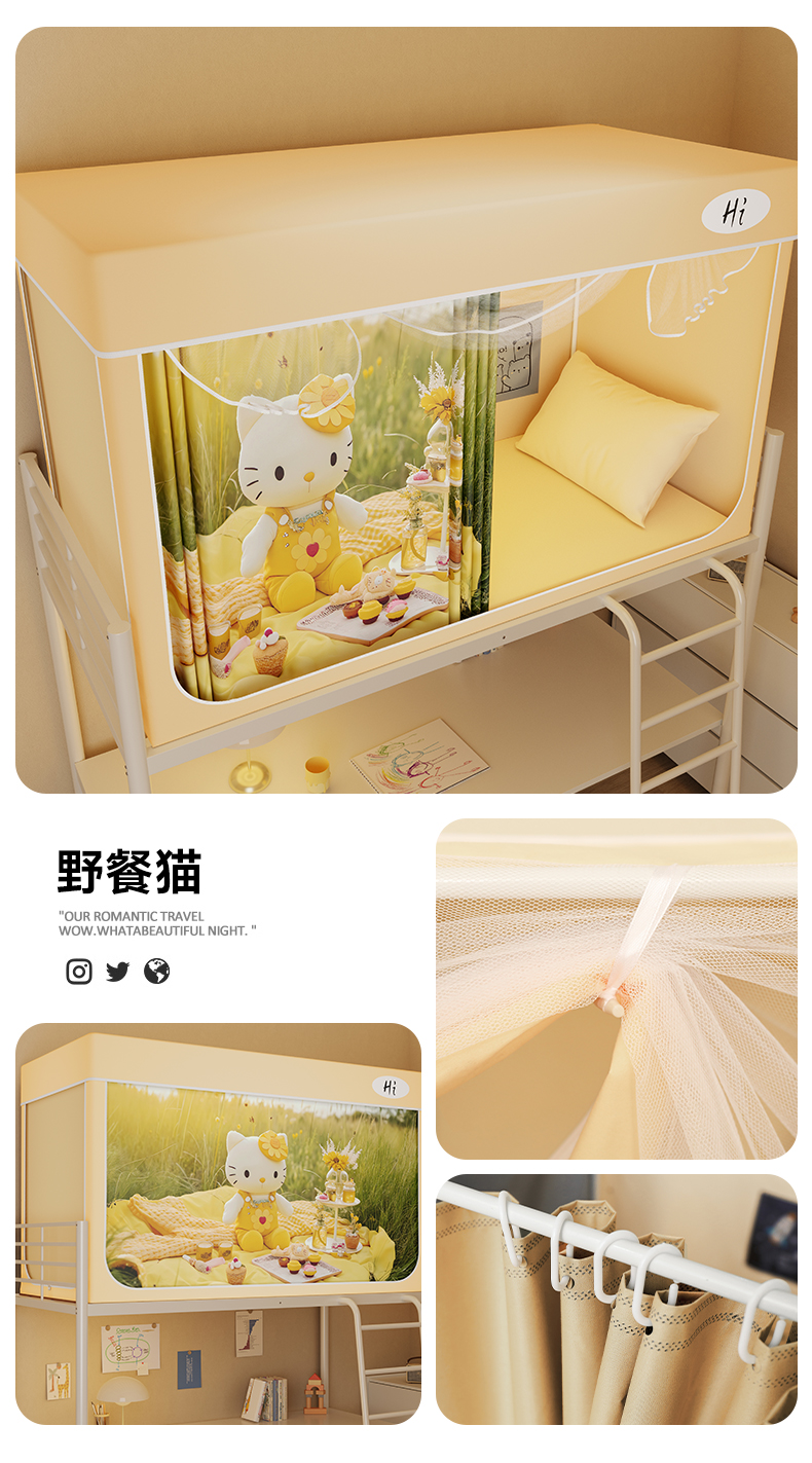 当前位置: 91家纺网 > 商品网购 > 床上用品 > 蚊帐 > 学生蚊帐 > 安金蚊帐2025新款防蚊遮光一体99%强遮光学生宿舍上下铺遮光学生蚊帐-黄色系列 野餐猫