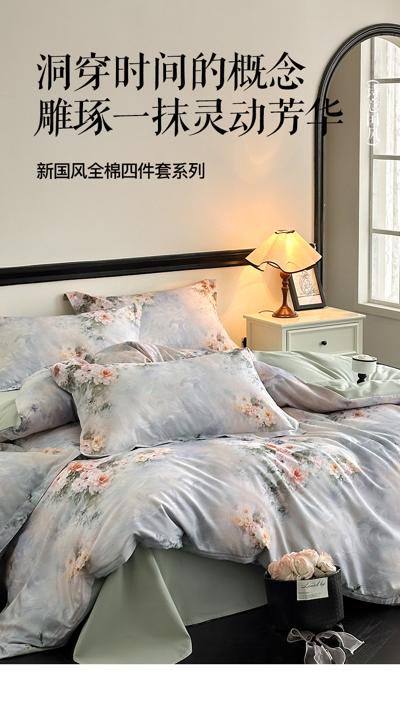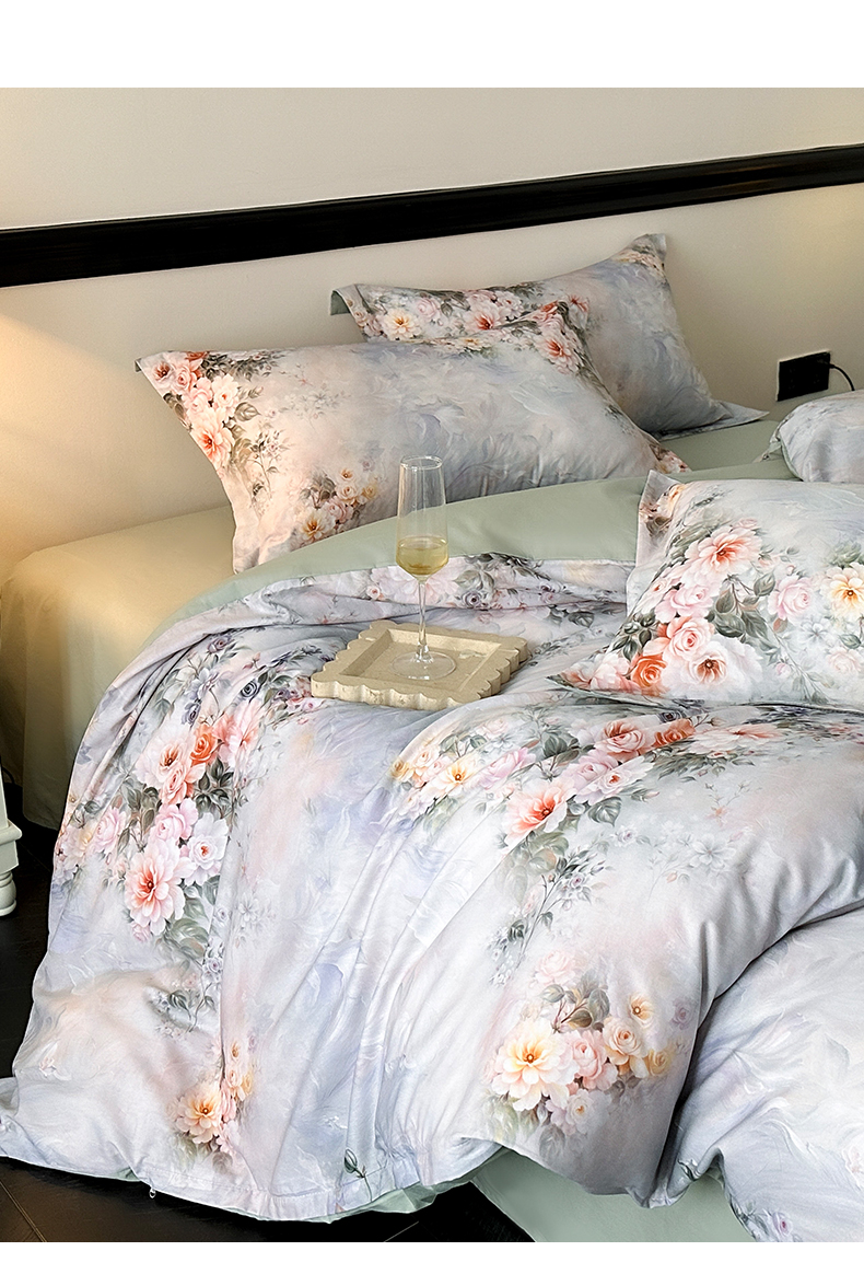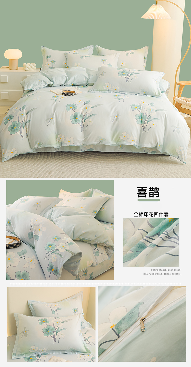 当前位置: 91家纺网 > 商品网购 > 床品套件 > 四件套 > 全棉普通四件套 > 金鑫汇家纺 2025新款13372全棉纯棉高端数码印花四件套 轻梦花海-蓝