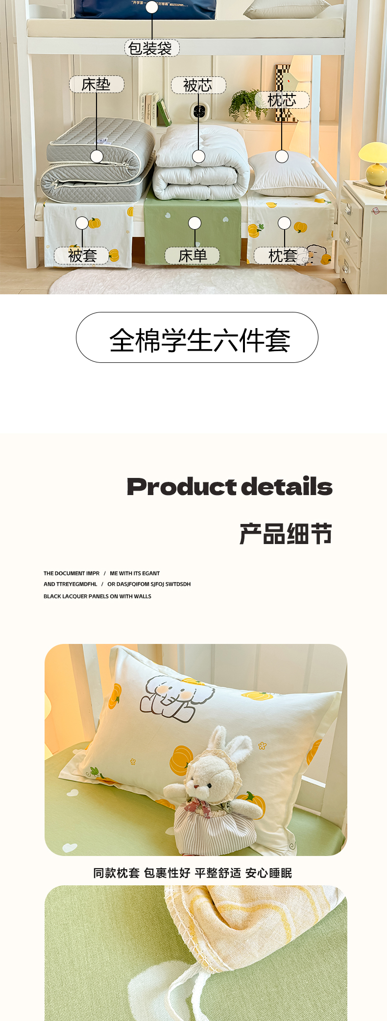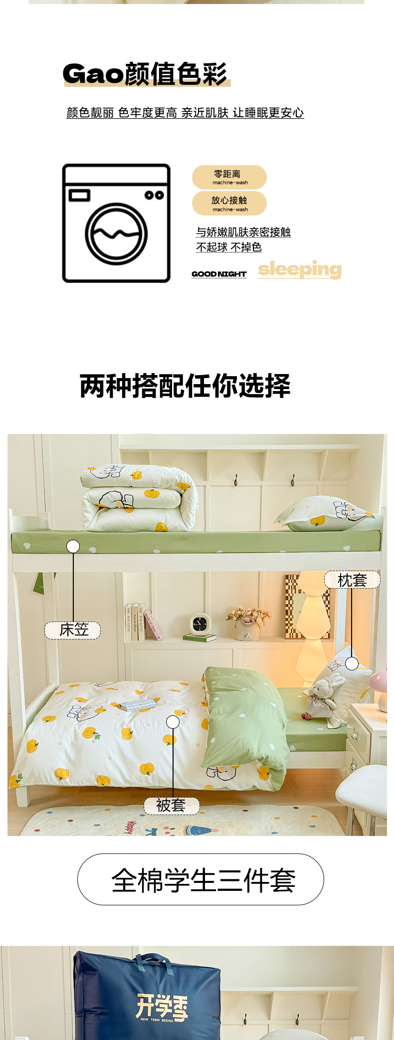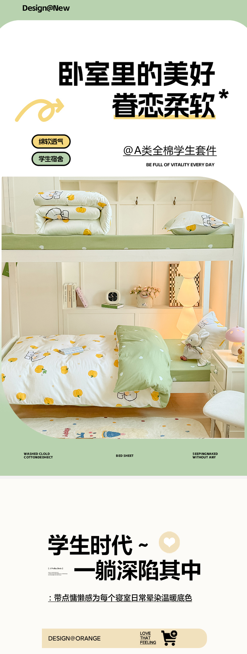 商品名称:优姿家纺 2025新款A类13372全棉纯棉学生宿舍三件套上下铺三件套 南语小象