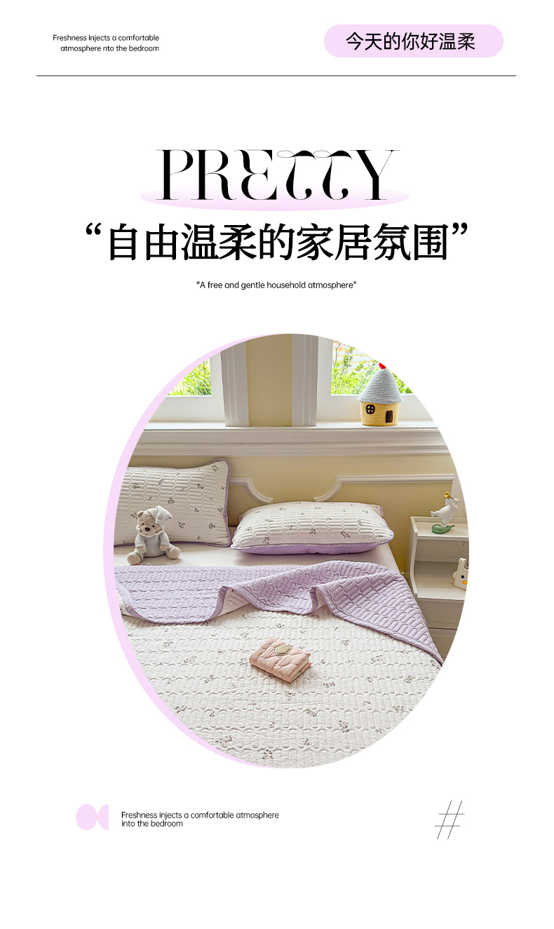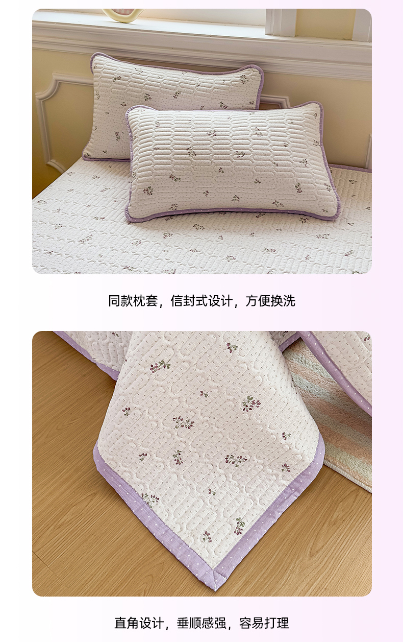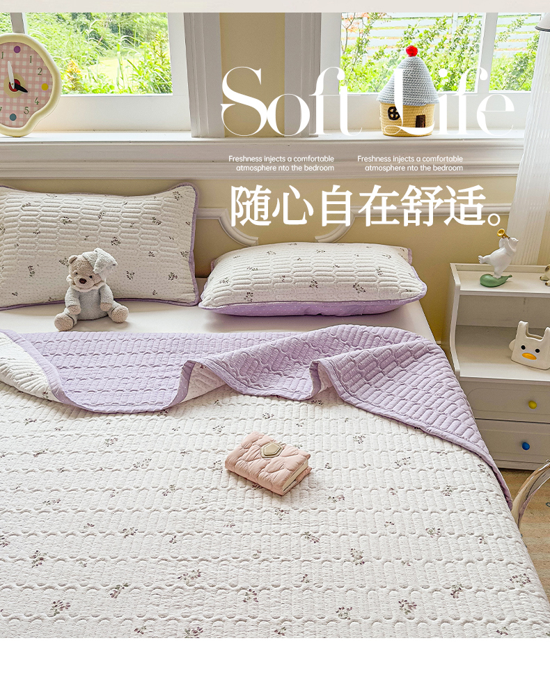 (总)芯元素 2024新款云纱棉床盖三件套,暗香,海盐蓝,花海,瑾年,青草绿,绅士咖,甜心兰,樱花粉