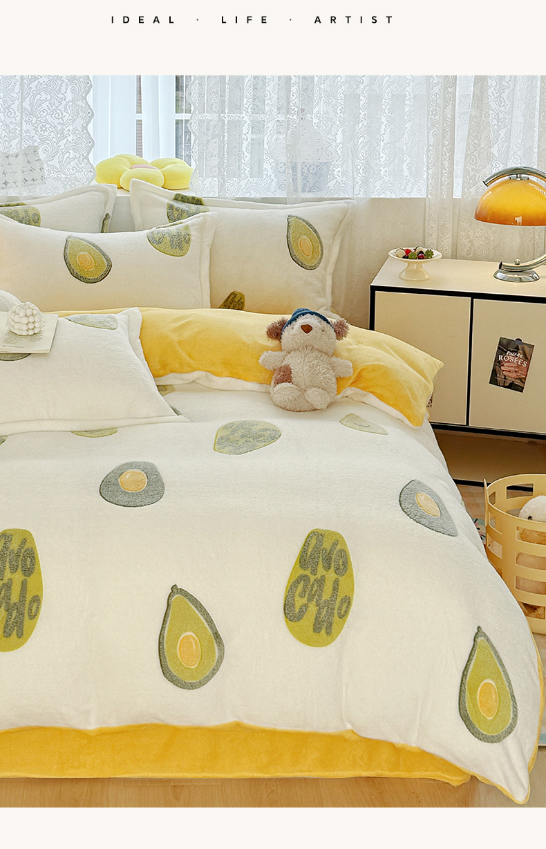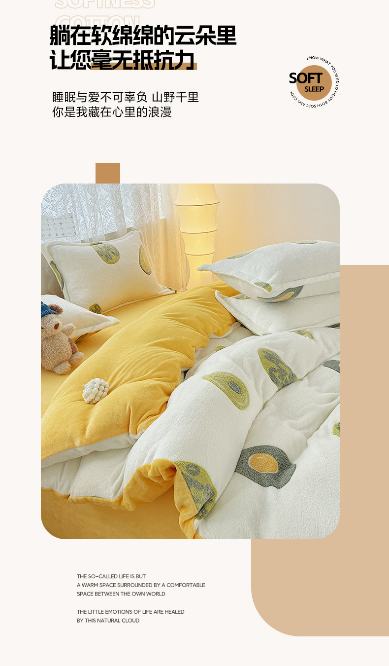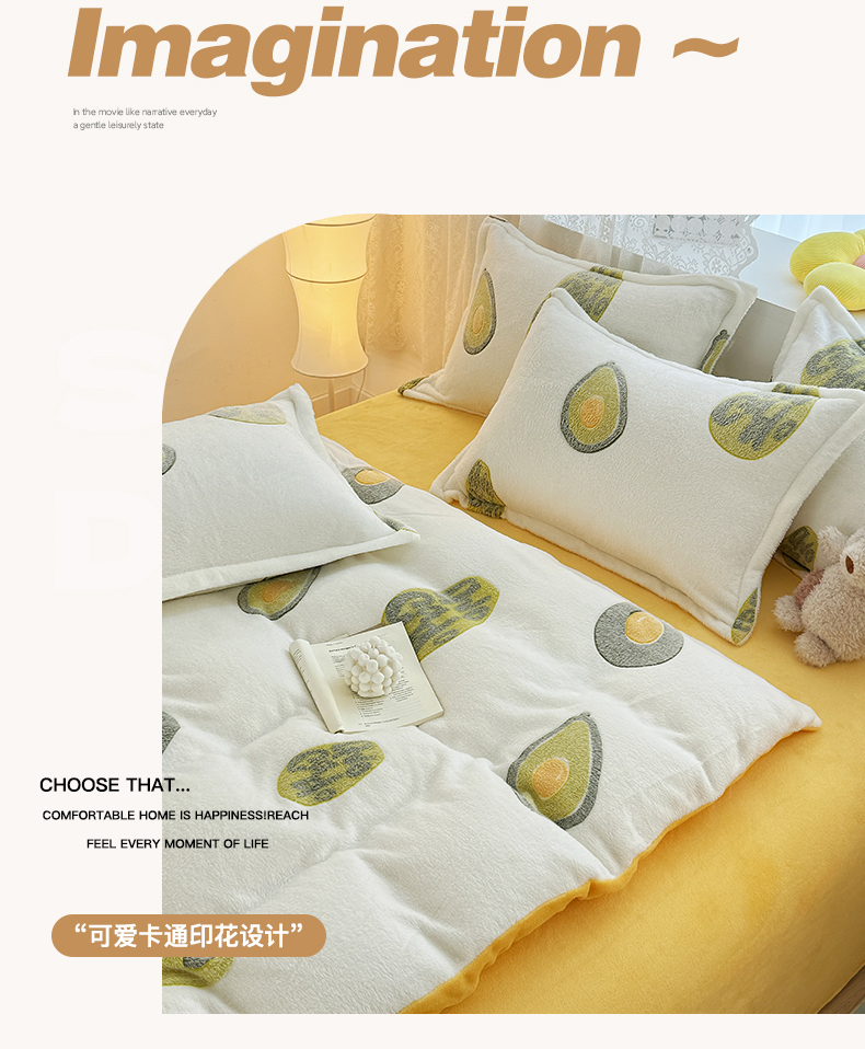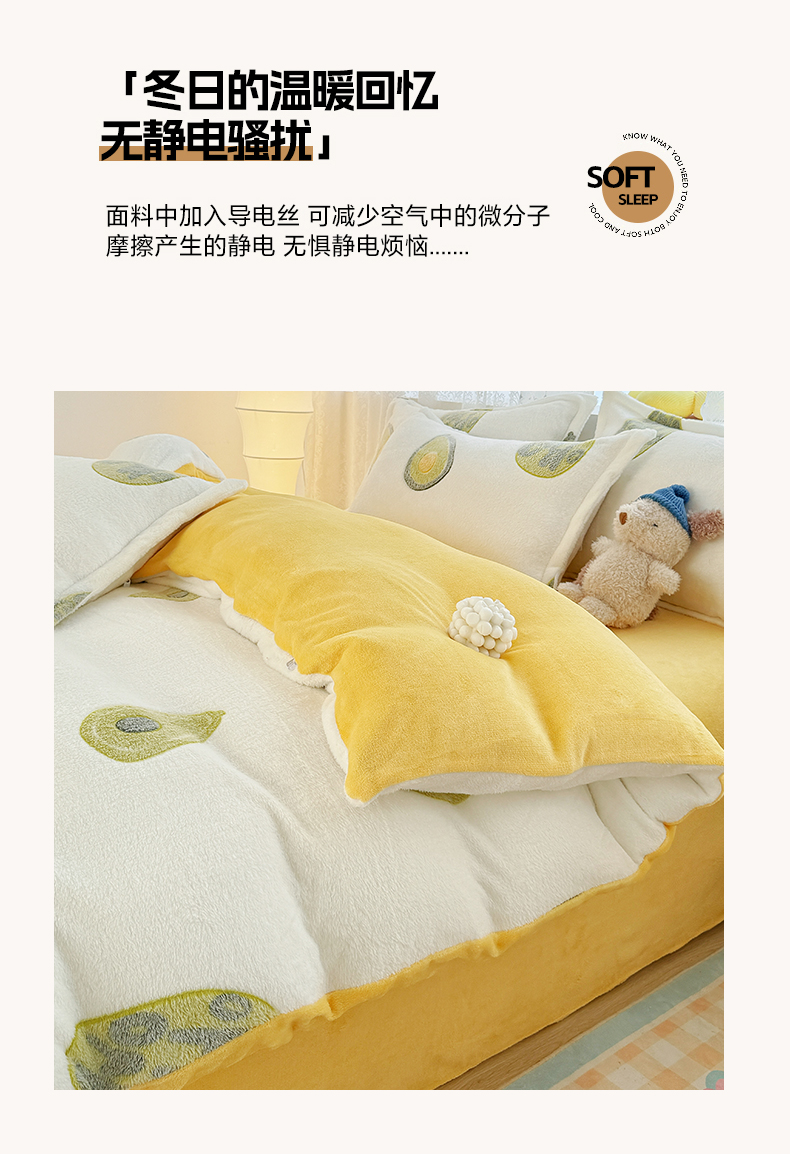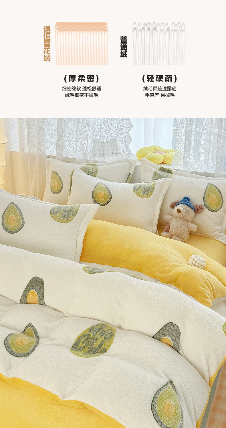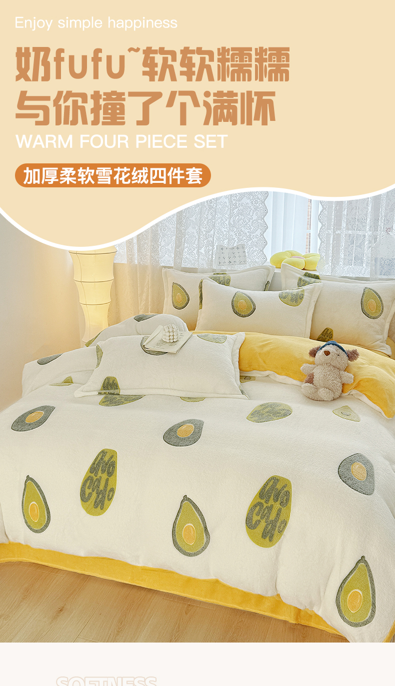商品名称:曼町家居 2025新款雪花绒四件套 牛油果