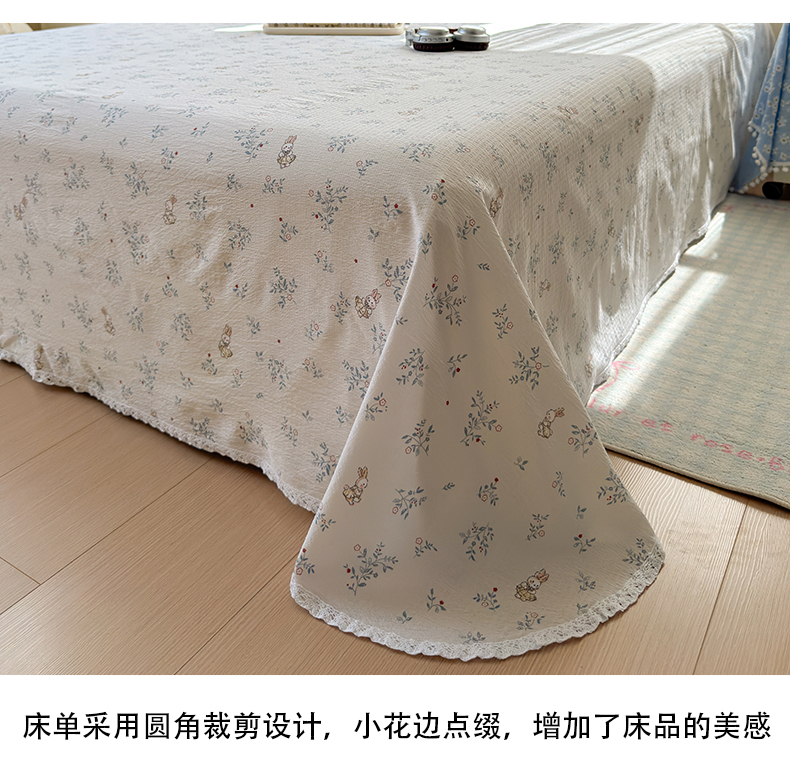 • 91家纺网 家纺一手货源 找家纺 沐芷 2025 A类双层纱花边床单单件 单人双人床单三件套 徘徊兔兔