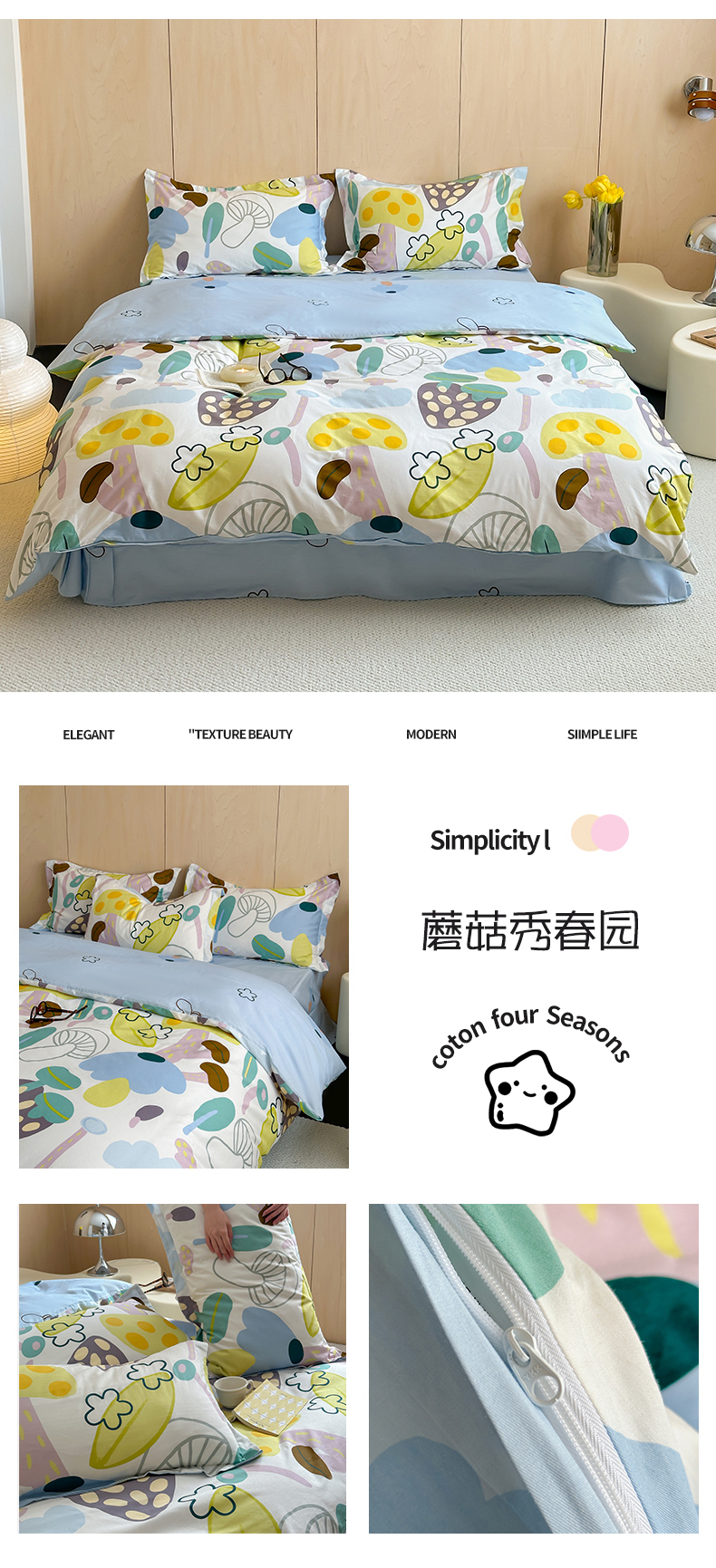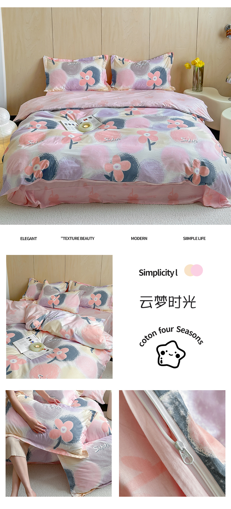 (总)麦田家纺 2025新款A类云感木棉皱皱双层纱印花四件套,春意浓,繁花,花颜,简意,开心小熊,腊肠犬,浪漫花语,免挽星辰,甜心格,小蓝町,樱桃格,紫韵