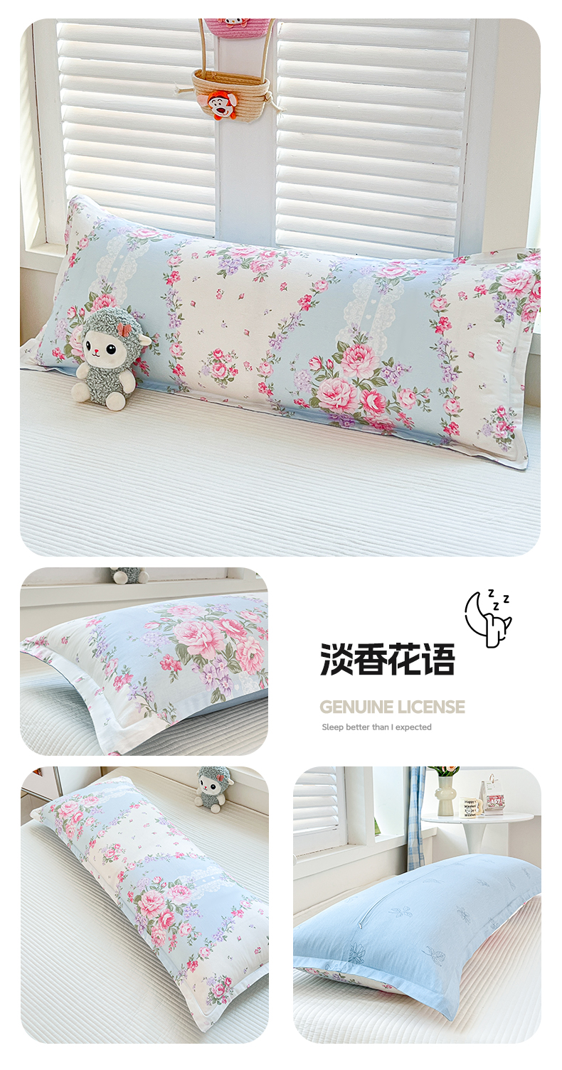 麦田家纺 2025新款全棉印花12868长枕 淡香花语