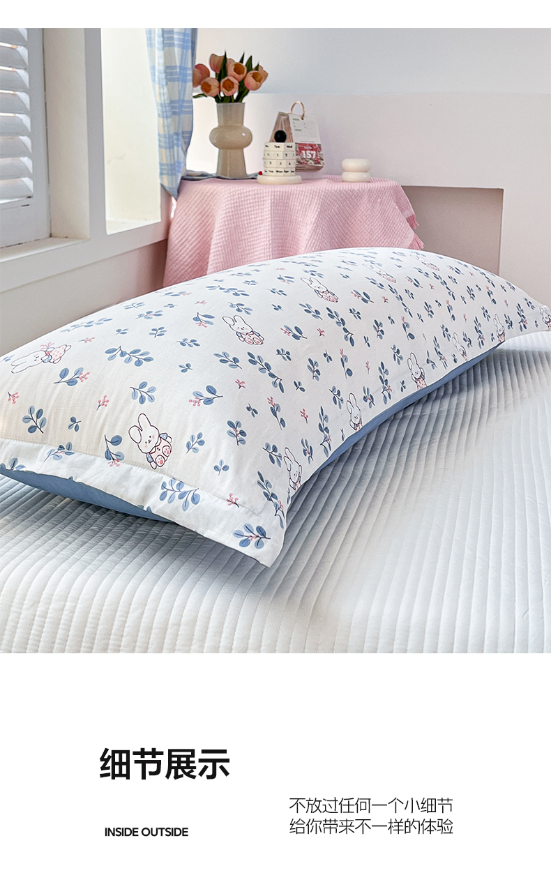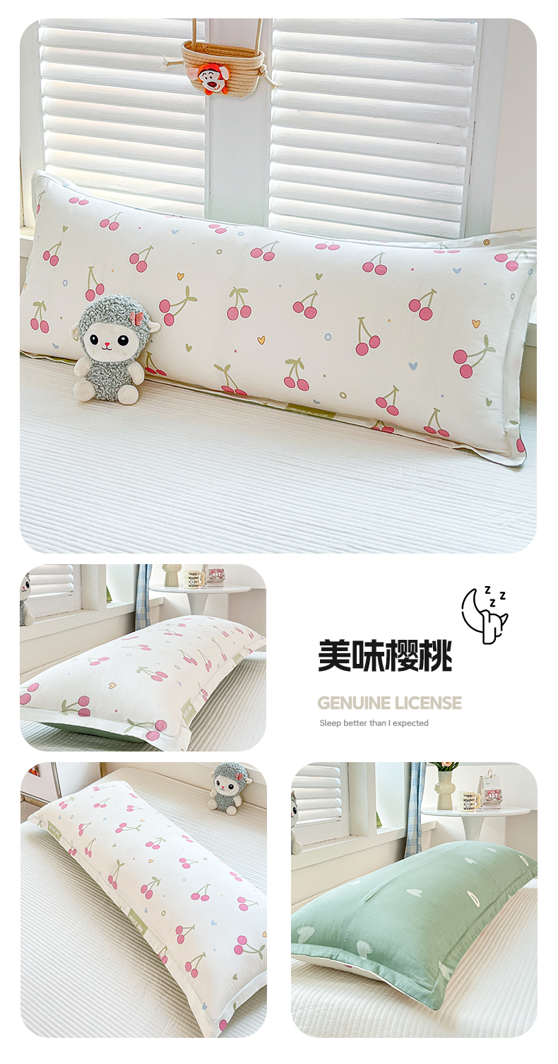 (总)麦田家纺 2025新款云感木棉皱皱双层纱长枕,春意浓,繁花,花颜,开心小熊,腊肠犬,浪漫花语,甜心格,小蓝町,樱桃格,紫韵,纯白