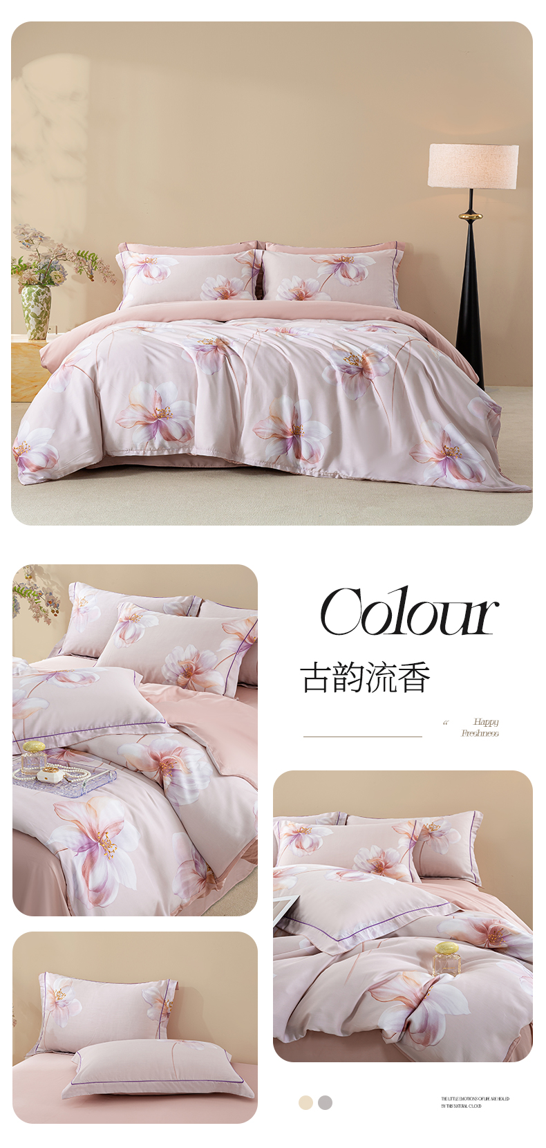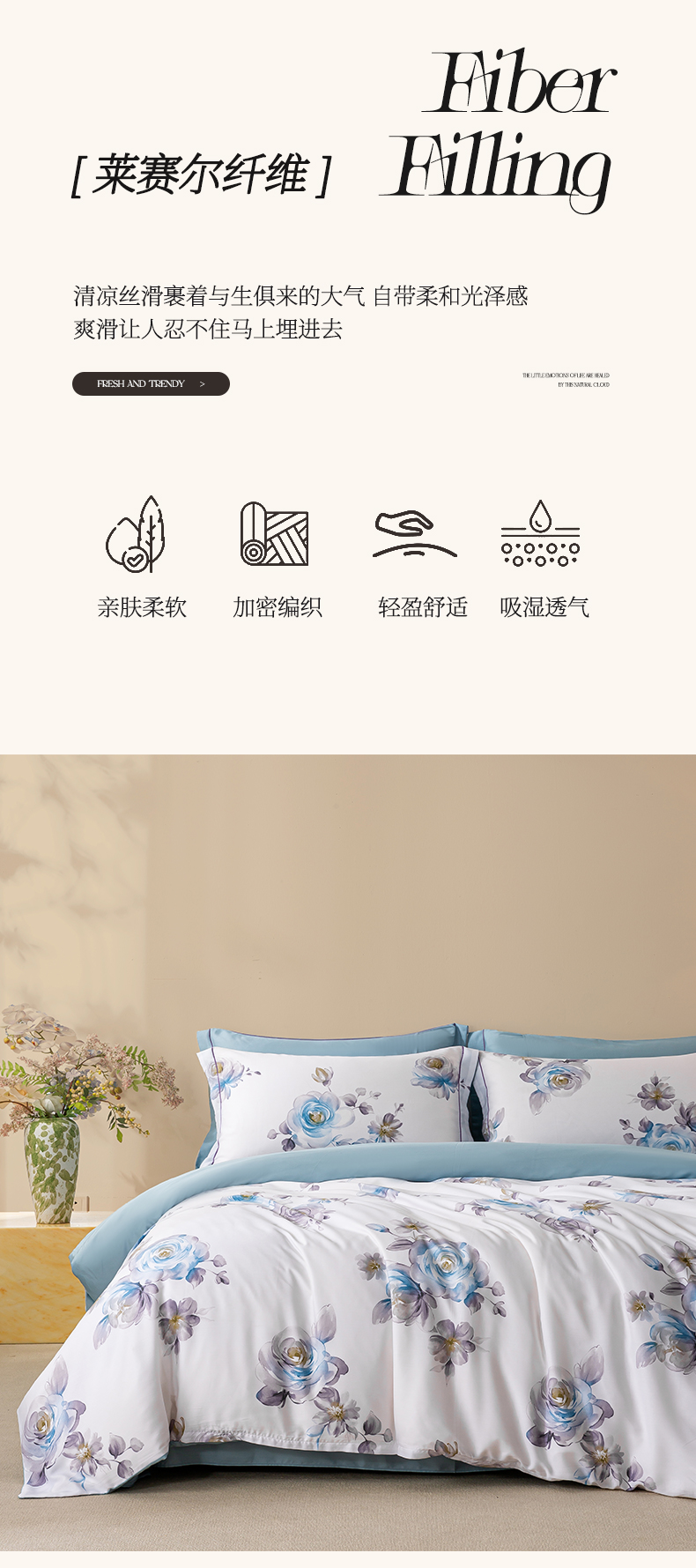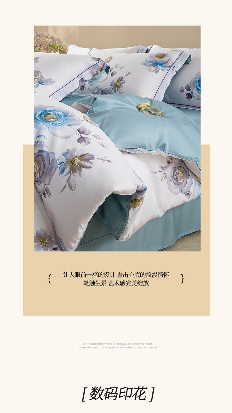 麦田家纺 2025新款50S莱赛尔天丝印花四件套 安妮玫瑰