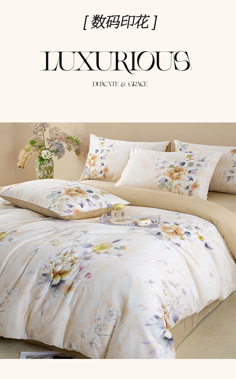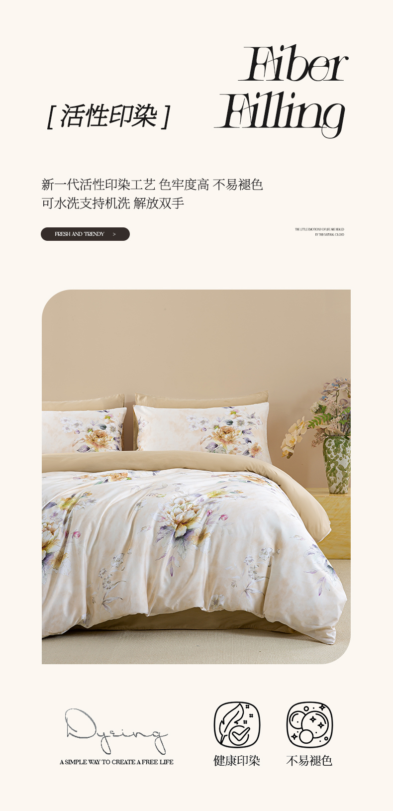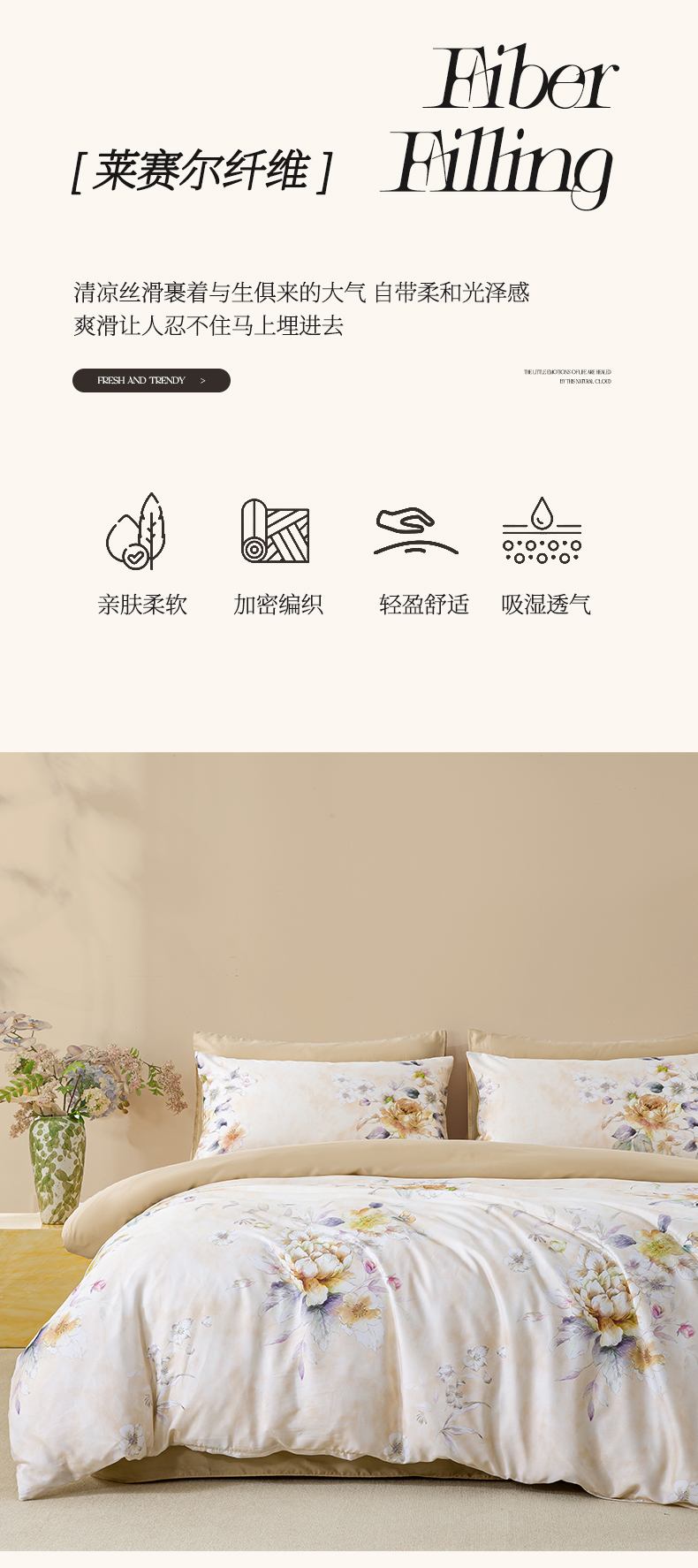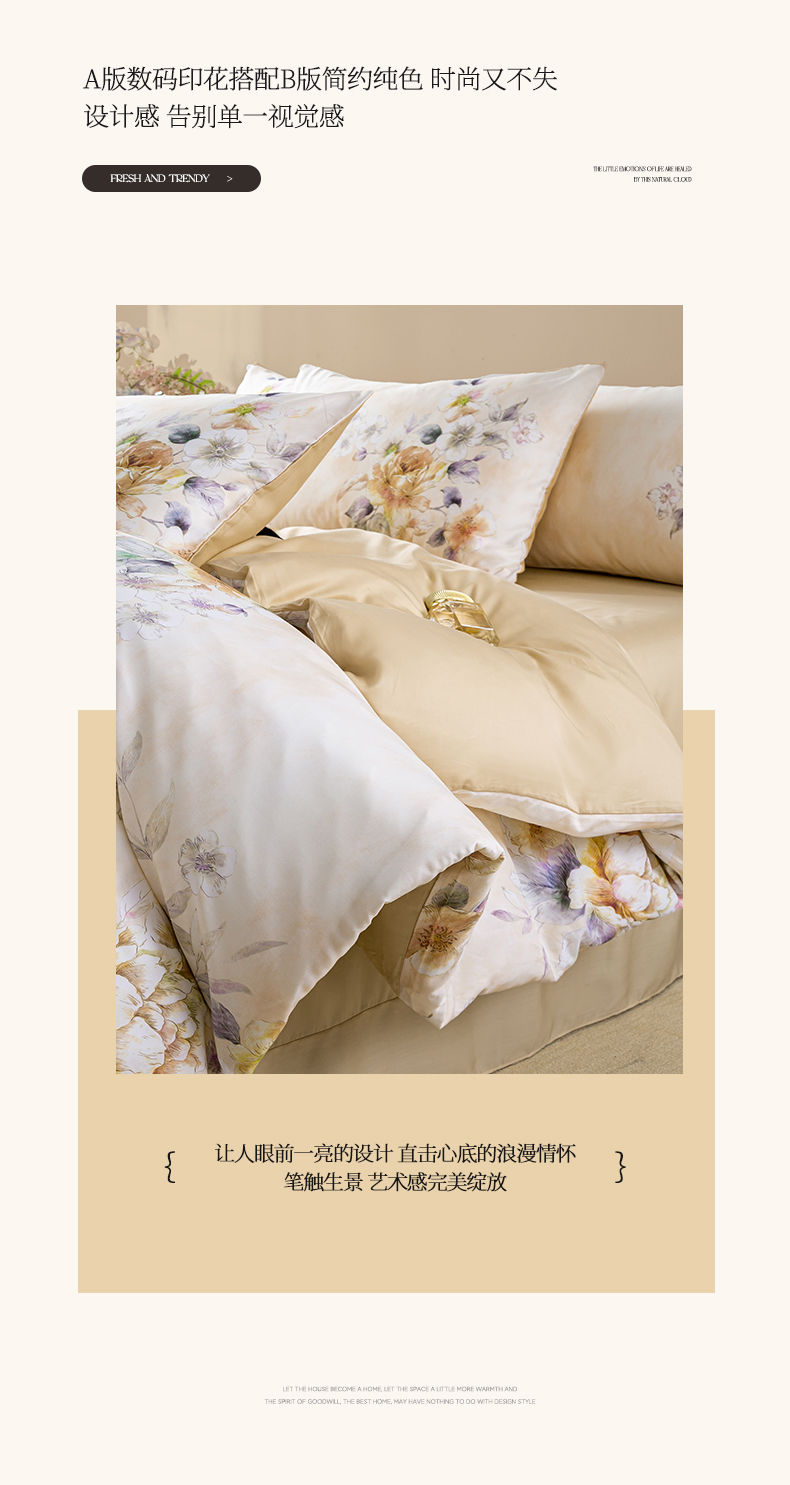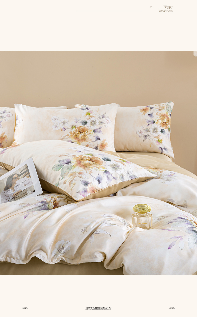 麦田家纺 2025新款50S莱赛尔天丝印花四件套 洛思-黄