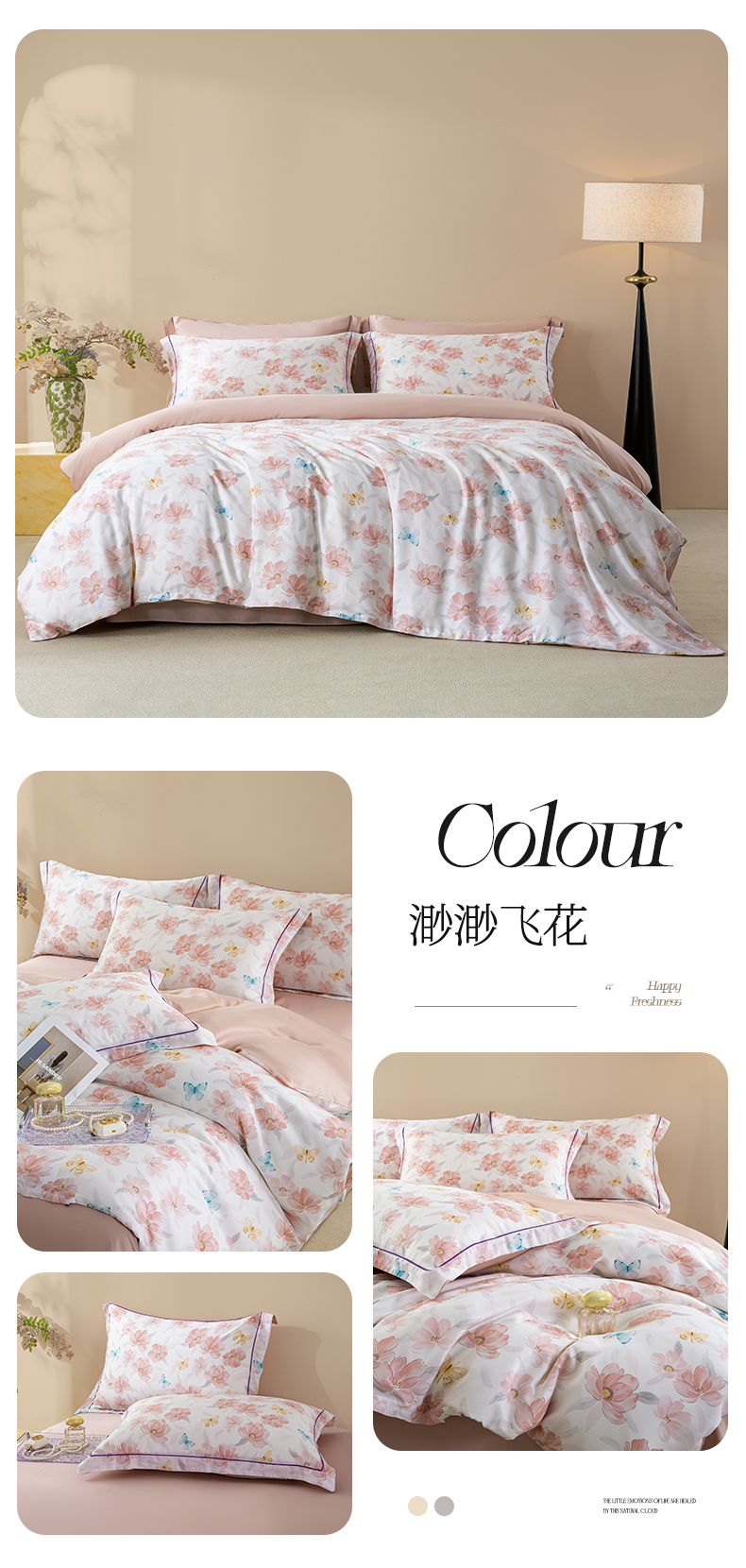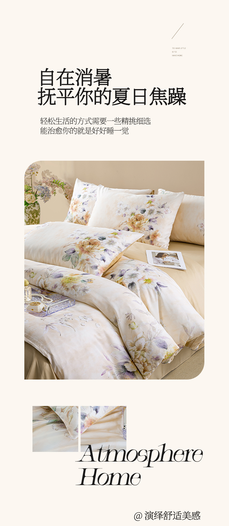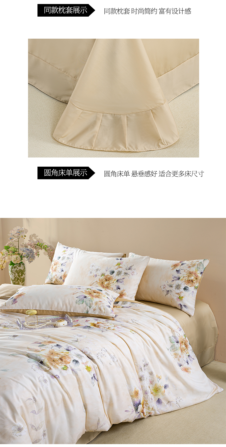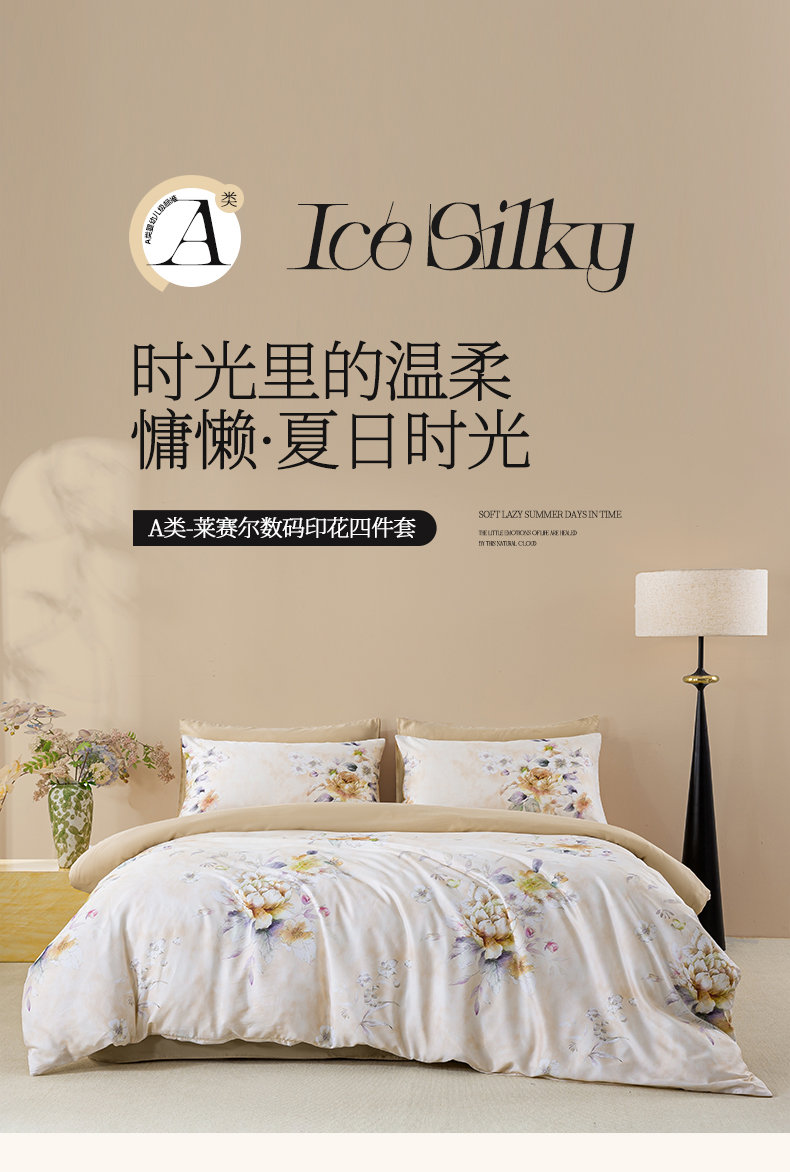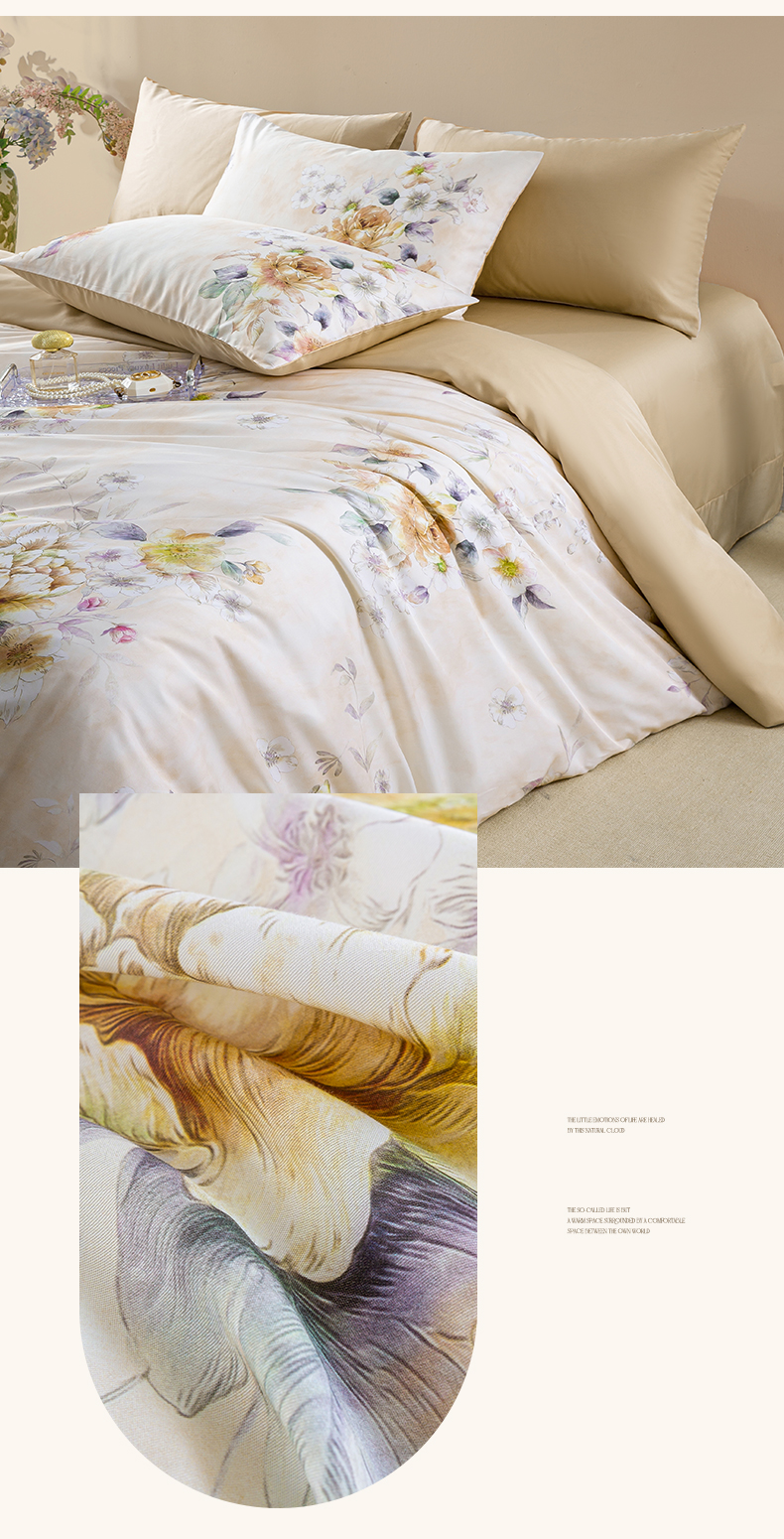 麦田家纺 2025新款50S莱赛尔天丝印花四件套 洛思-黄