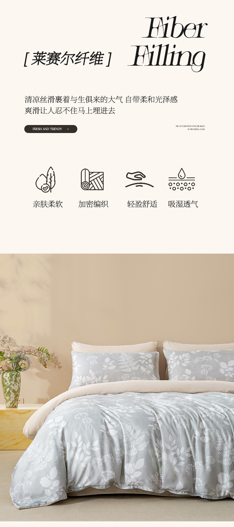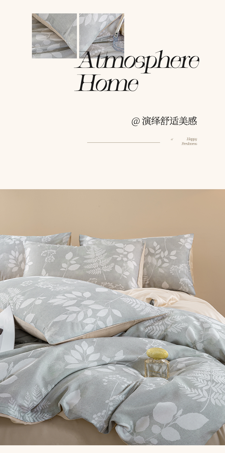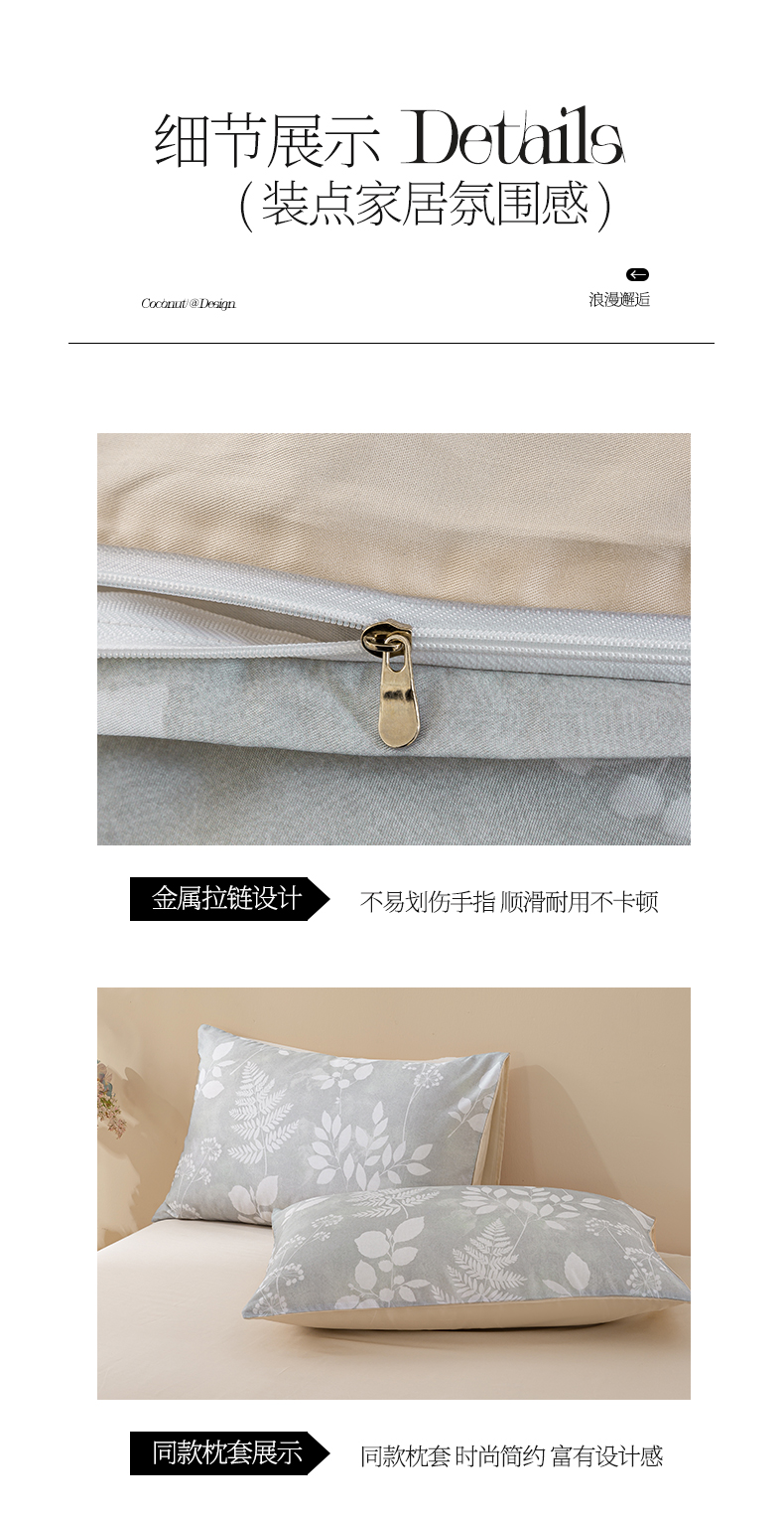 商品名称:麦田家纺 2025新款50S莱赛尔天丝印花四件套 叶影-灰