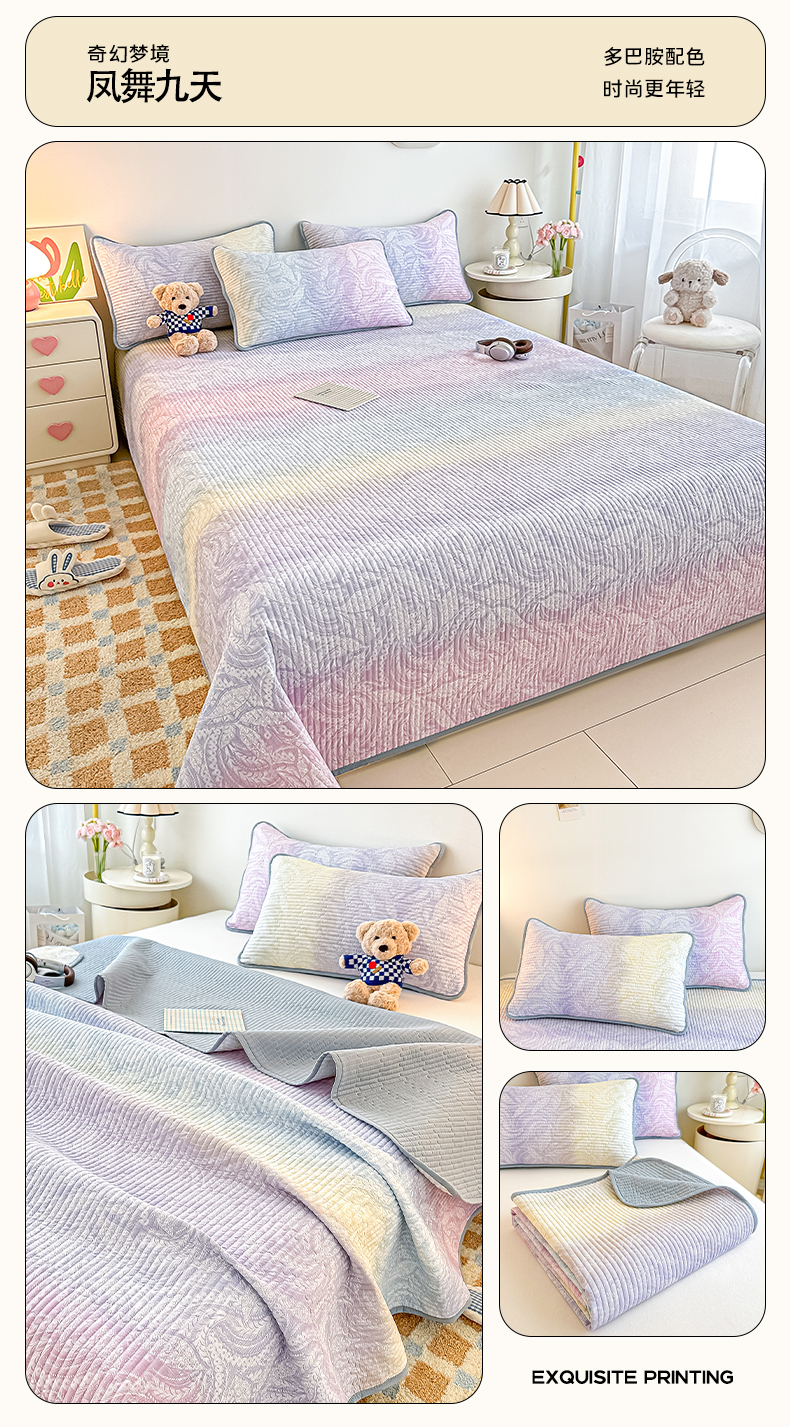 • 91家纺网 家纺一手货源 找家纺 麦田家纺 2025新款双层纱小云棉多功能床盖 奇幻梦境--秋云