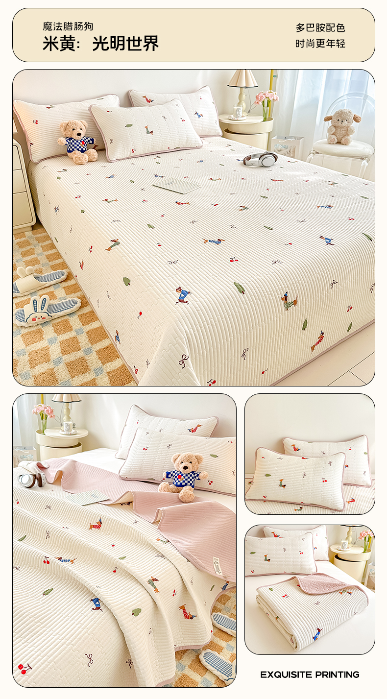 (总)麦田家纺 2025新款A类云感木棉皱皱双层纱印花四件套,春意浓,繁花,花颜,简意,开心小熊,腊肠犬,浪漫花语,免挽星辰,甜心格,小蓝町,樱桃格,紫韵