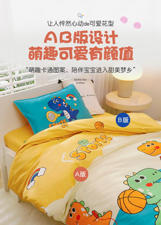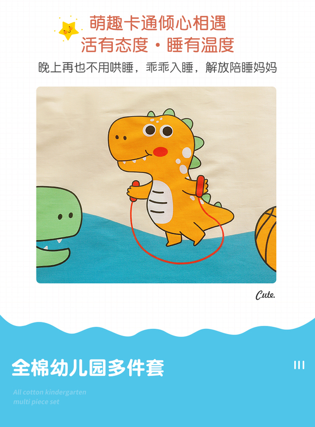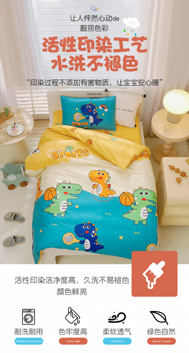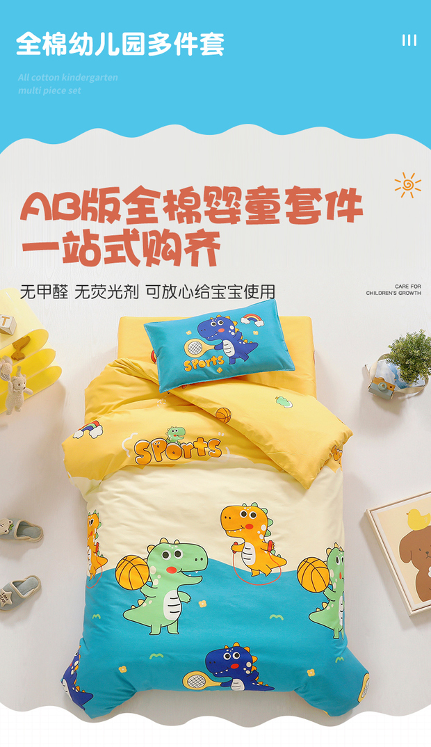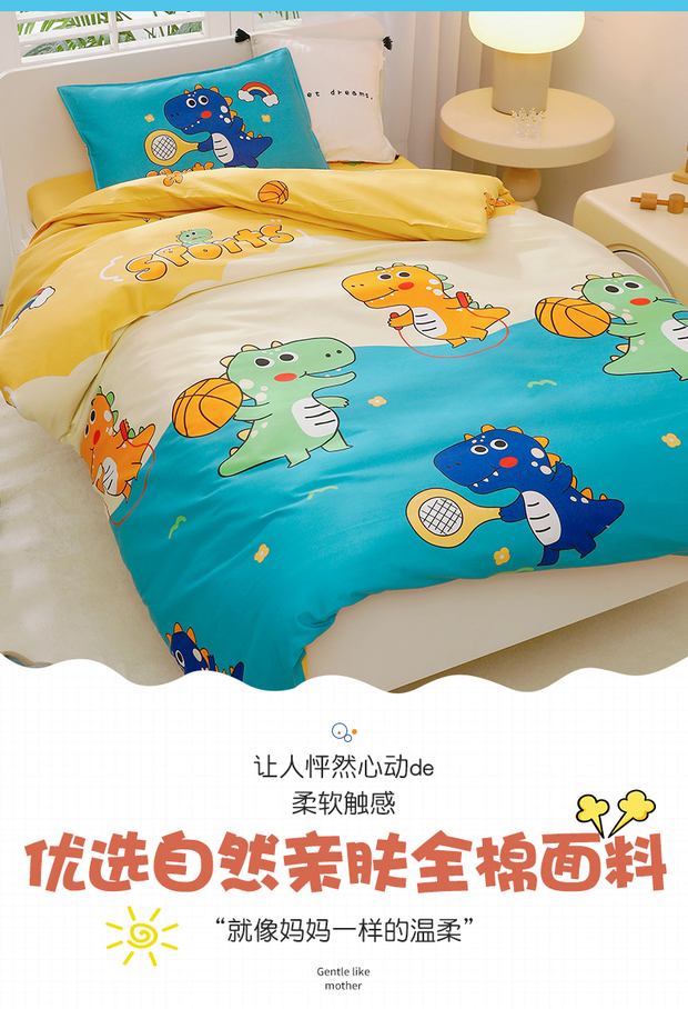 当前位置: 91家纺网 > 商品网购 > 床品套件 > 三件套 > 鱼宝 2025新款全棉幼儿园套件 三件套—童真系列 恐龙运动员