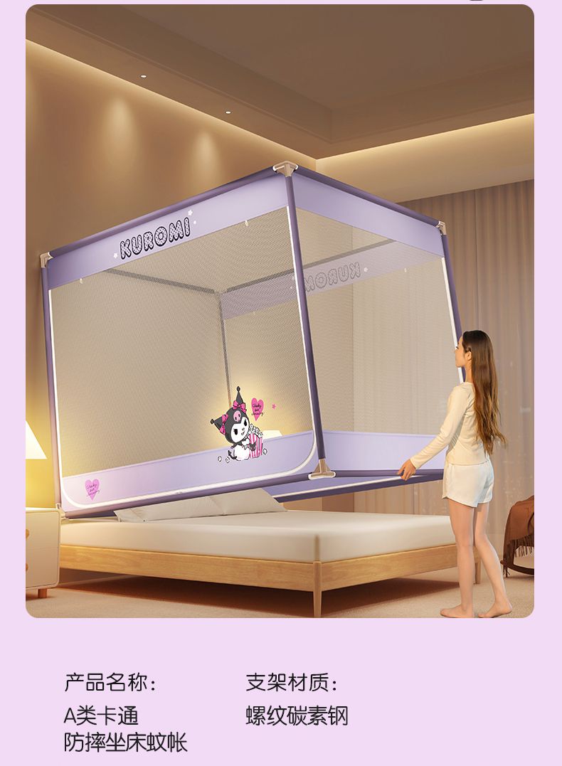(总)佳梦家纺 2025新款三丽鸥坐床蚊帐,库洛米灰,库洛米紫,奶茶玉桂-灰,糖果玉桂,小鸟玉桂